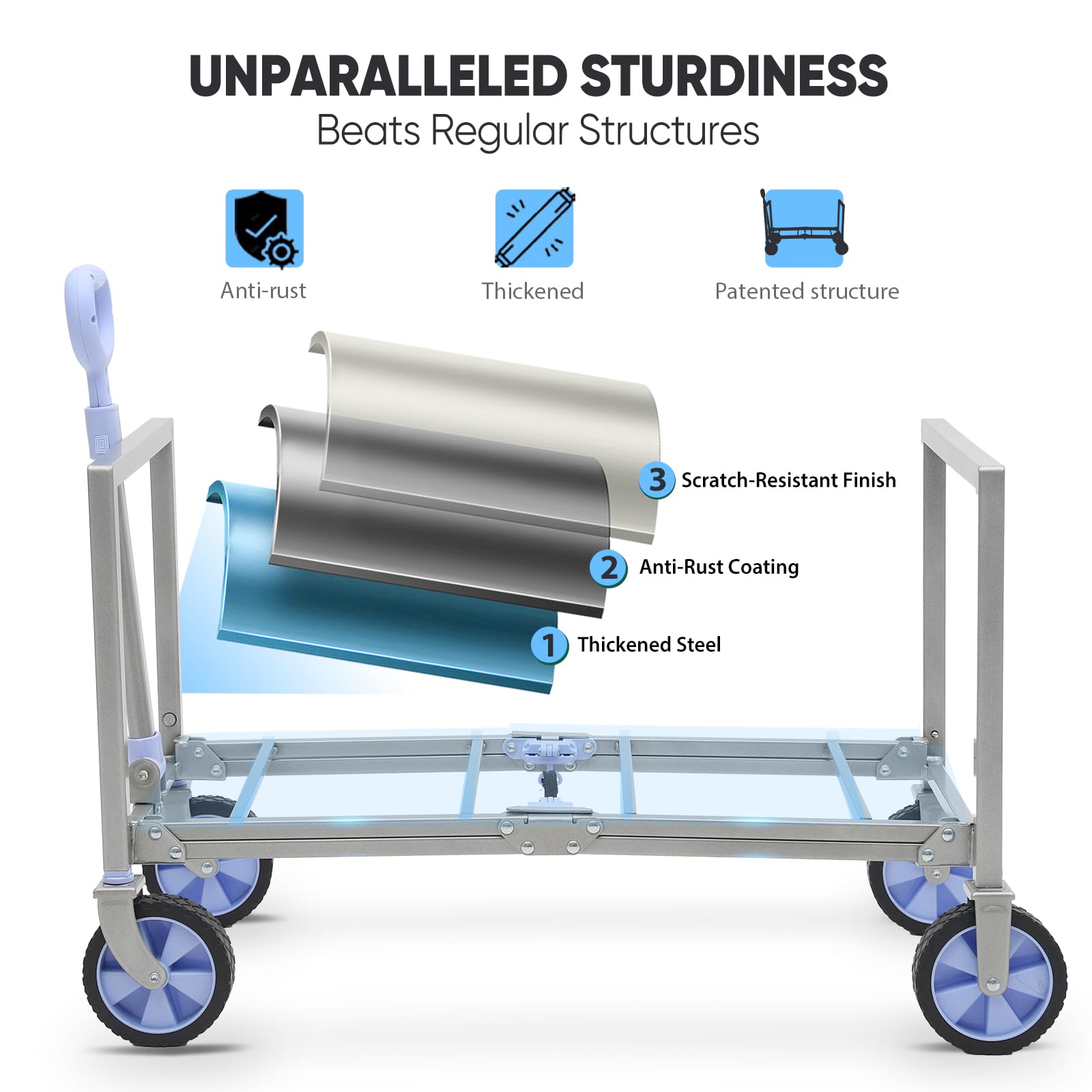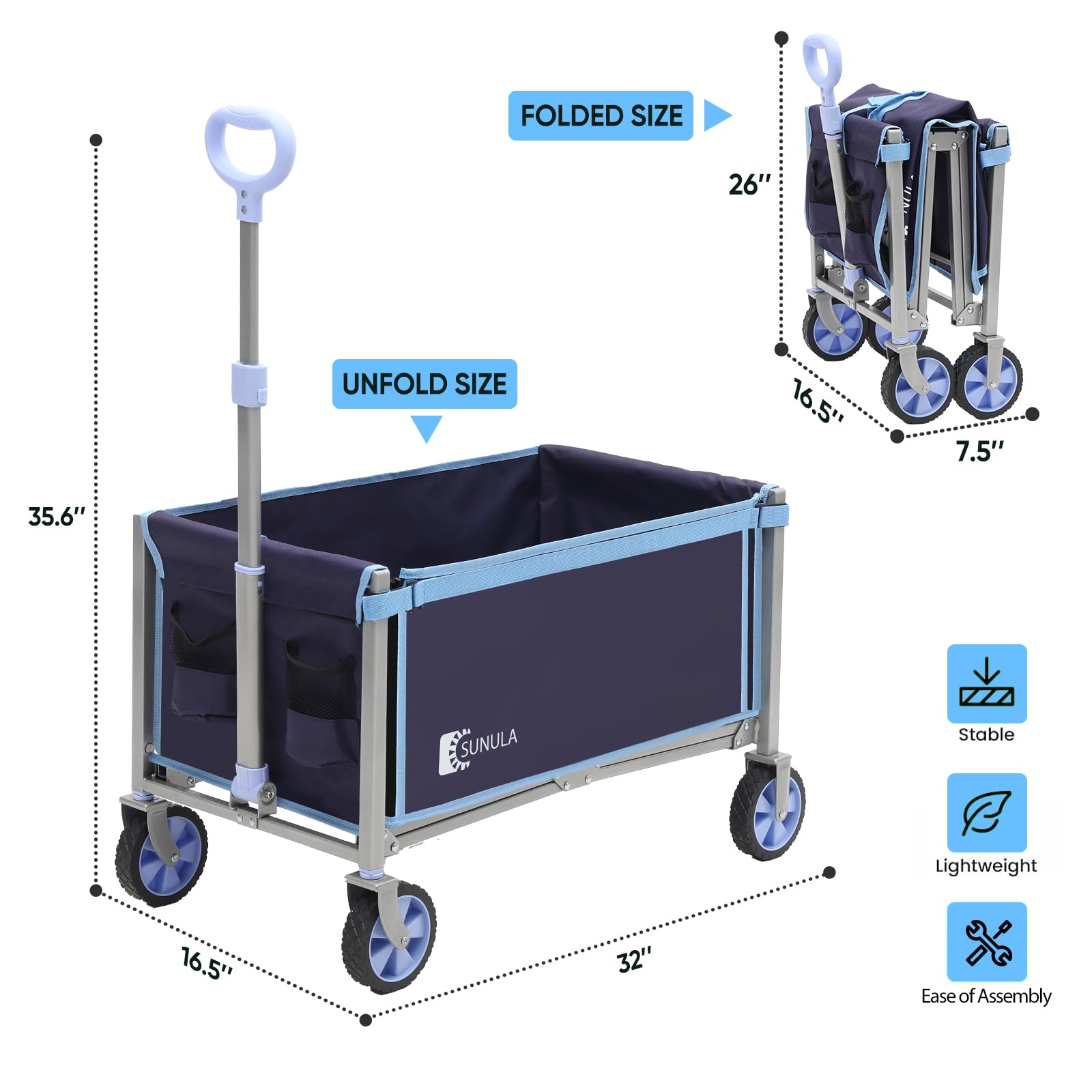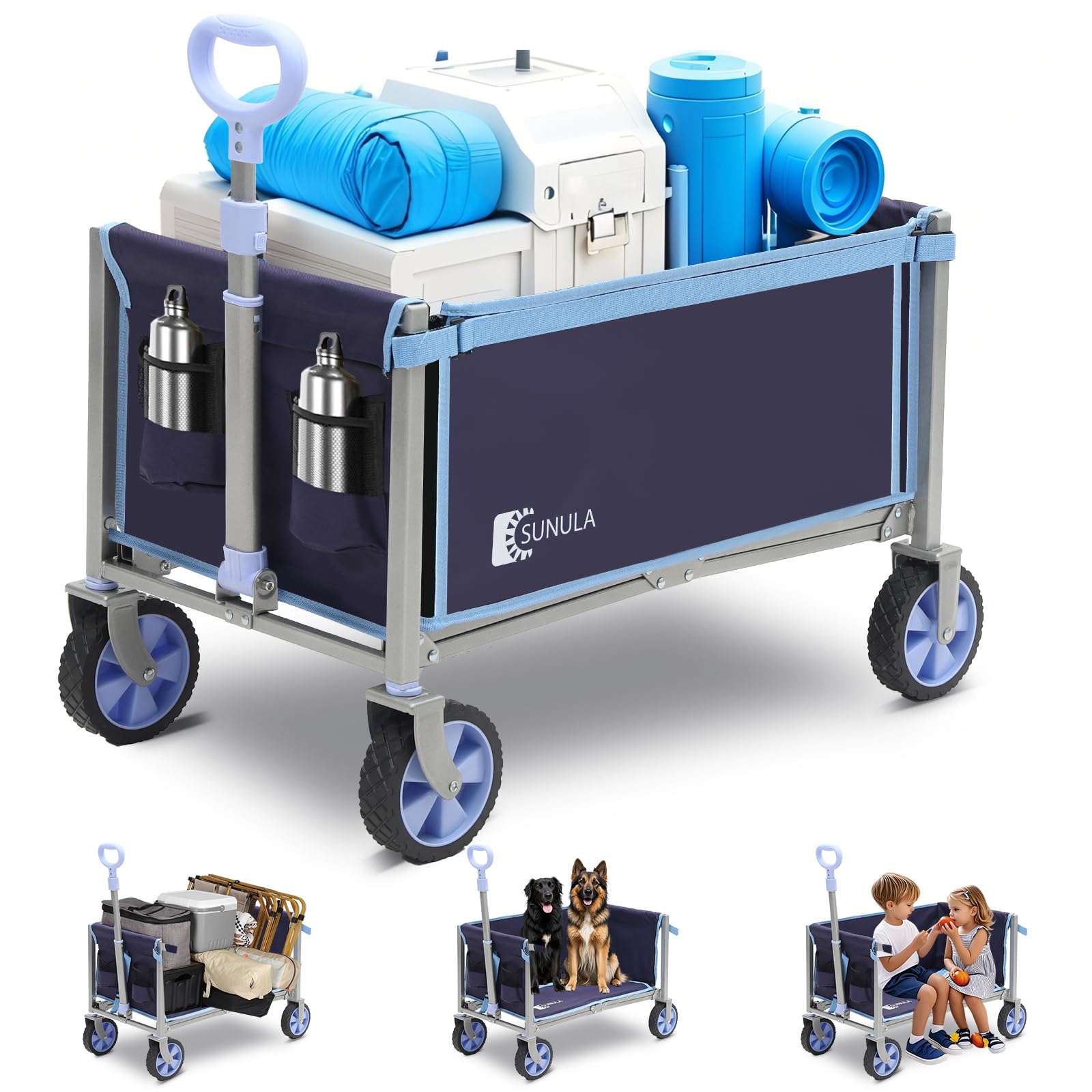 Sunula Foldable Wagon Cart 220lbs- 3 in 1 Collapsible Wagon Cart with Wheels, 2 Cup Holders, for Groceries, Camping, Shopping, Garden, Pet Riding-1 Year Warranty