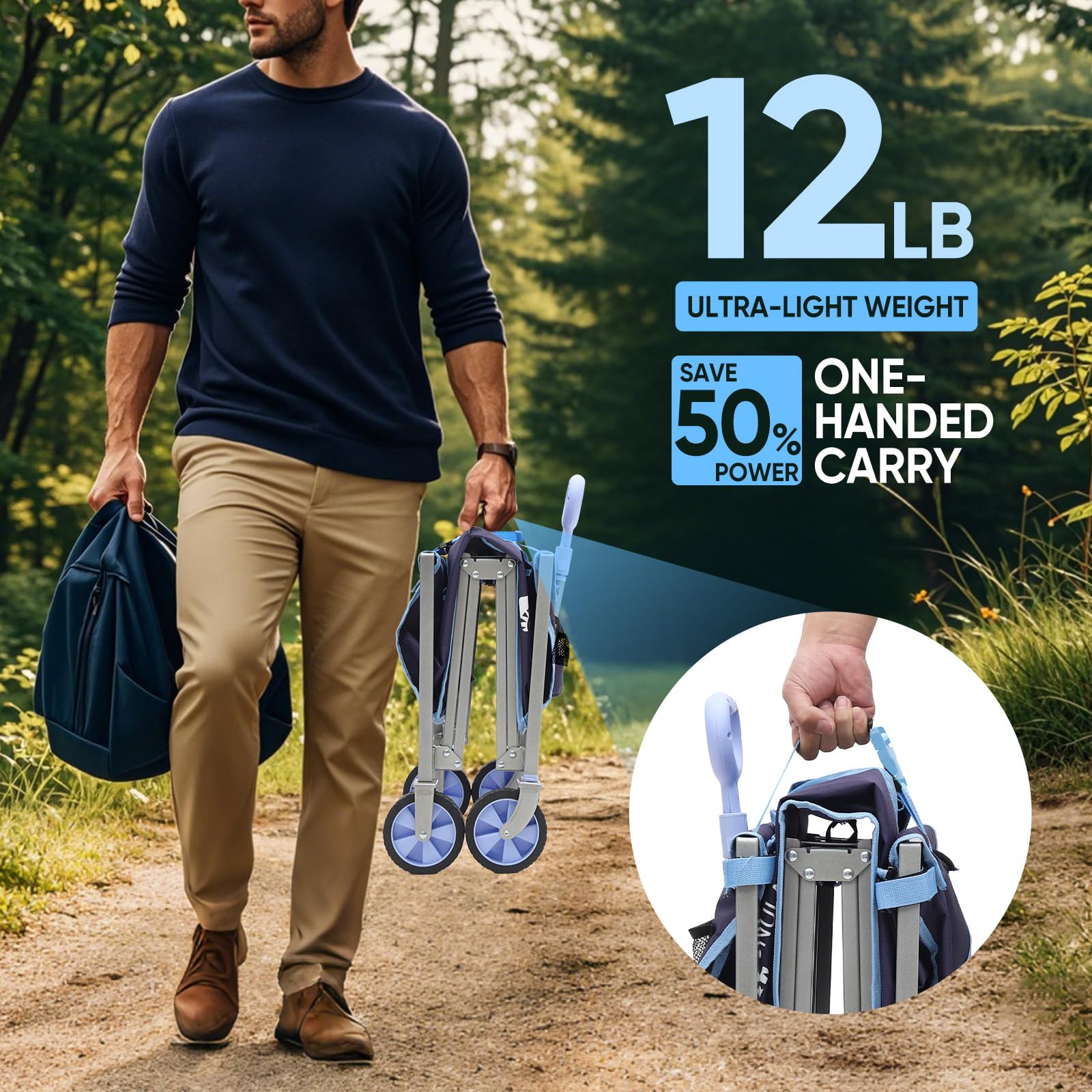 • ๐‚๐Ž๐Œ๐๐€๐‚๐“ ๐๐”๐“ ๐‹๐€๐‘๐†๐„: Weighting only ๐Ÿญ๐Ÿฎ ๐—น๐—ฏ๐˜€, 50% easier to handle and is easily stored in your trunk or garage. Quickly installed and used without tools ensures you can use the collapsible wagon with wheels up in moments. with wheels up in moments.