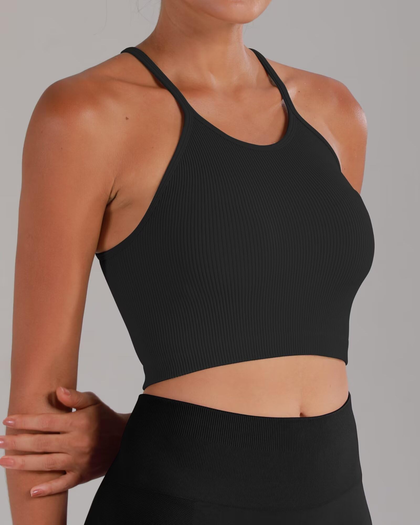 Sunzel Free to Be Tank, Ribbed Crop Tops for Women Summer Tank Tops Cute No pad Racerback Camisole Cropped Workout Gym Yoga Black Brown Grey(3pcs) M