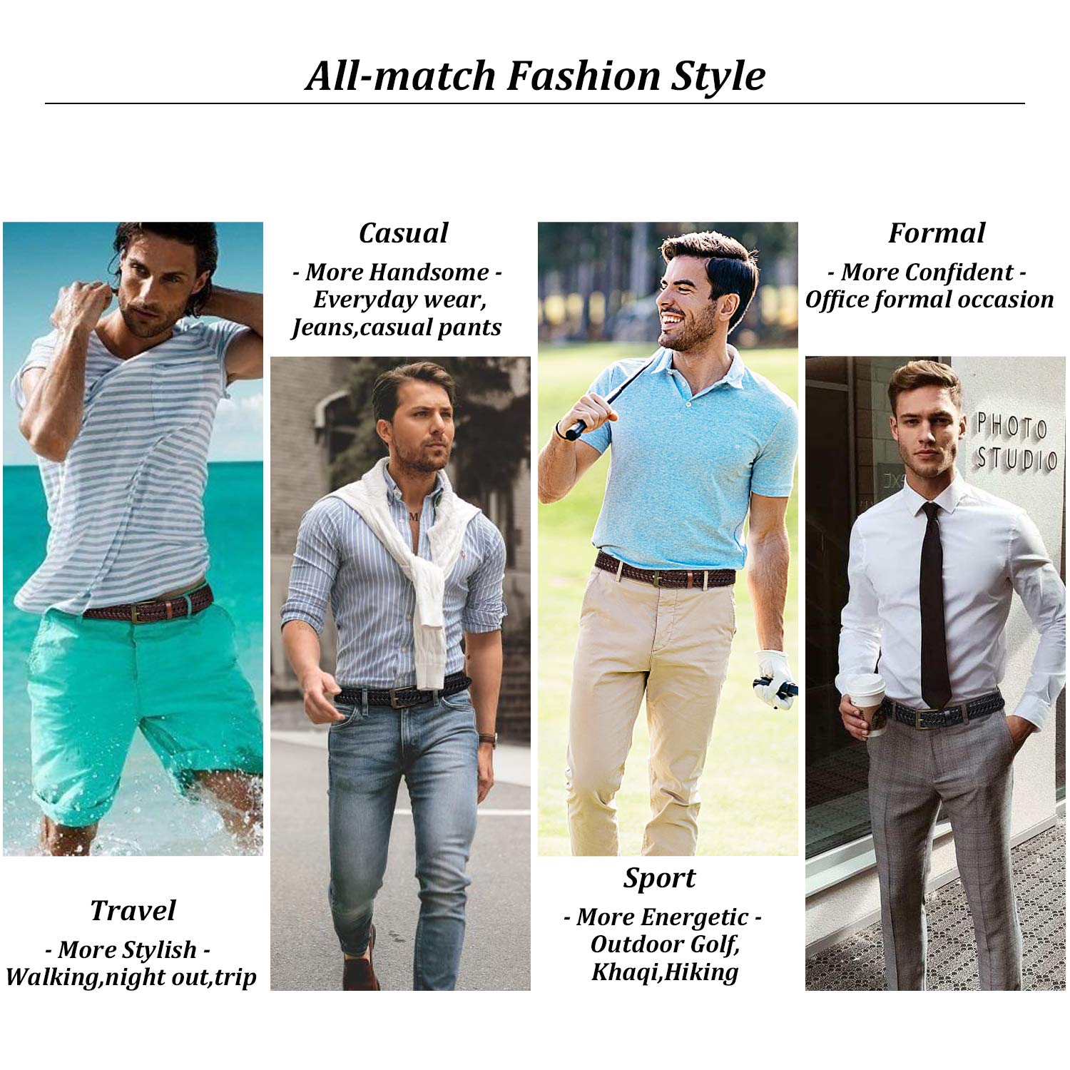 • ★【Perfect for Any Outfit and Any Occasion】 From business attire to casual dress, this braided leather belt is your new go-to accessory to stand out in class at the office or during a date. Our Braided casual belt can be easily and perfectly paired with your khakis, pants, jeans and business casual pants, golf, outdoor activities.