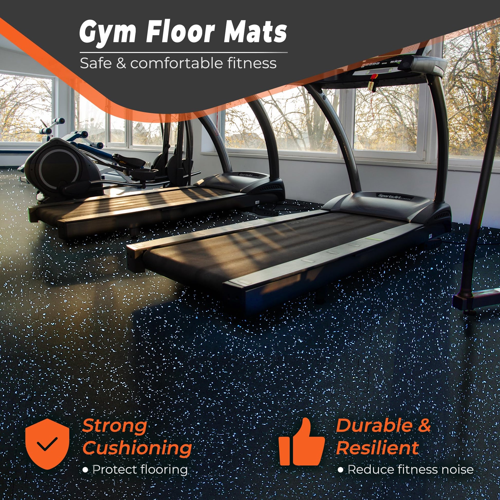 SUPERJARE 0.4'' Thick 12 Pcs 48 Sq Ft Rubber Top Exercise Equipment Mats, High Density EVA Foam Mats with Rubber Top, Interlocking Gym Flooring for Home Gym, Protective Workout Mat, Black/Blue