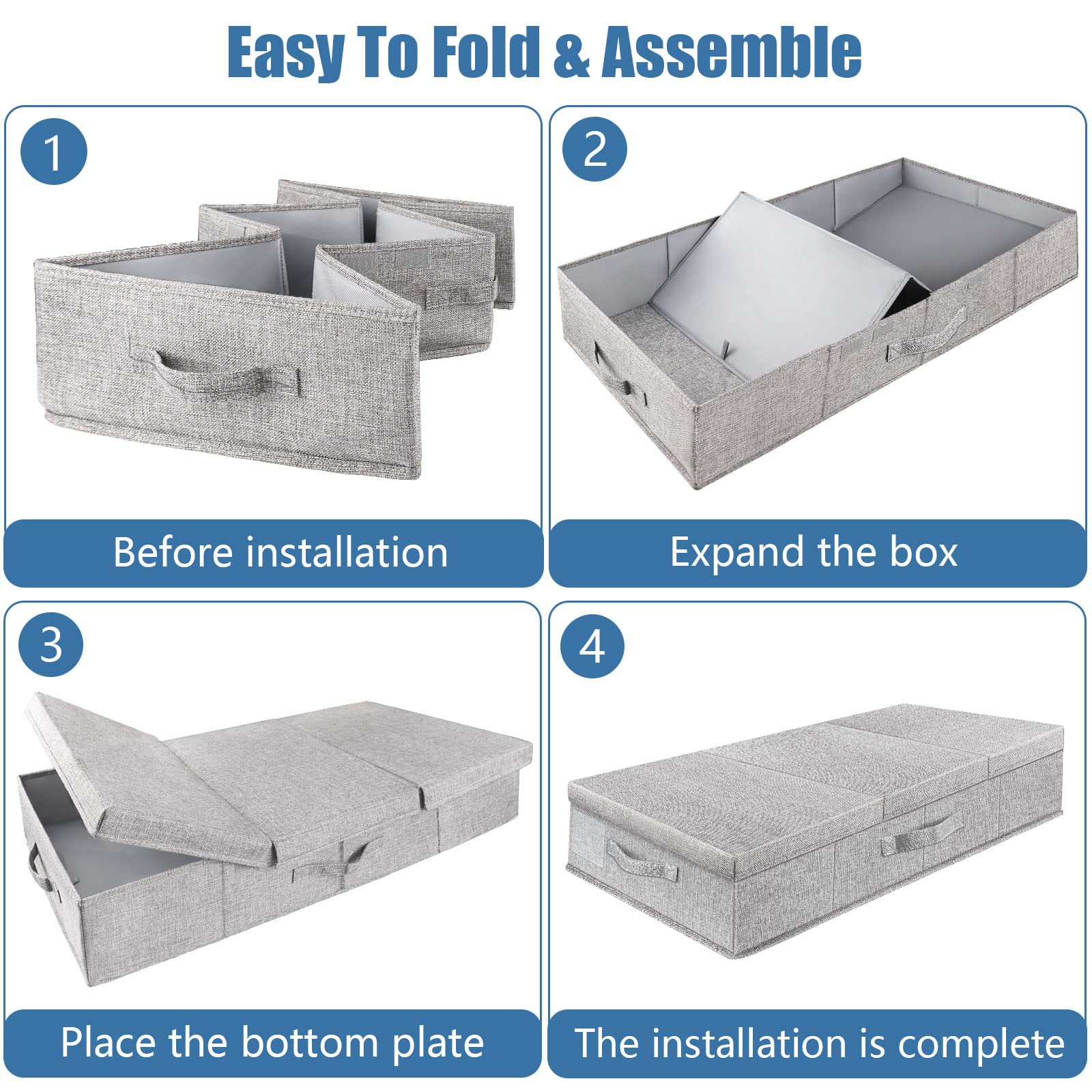 • Sturdy Material: The under-bed storage box is made of breathable linen fabric on the outside and made of Oxford cloth on the inside. 3 sided Reinforced handles make it easy to pull them out from under the bed.