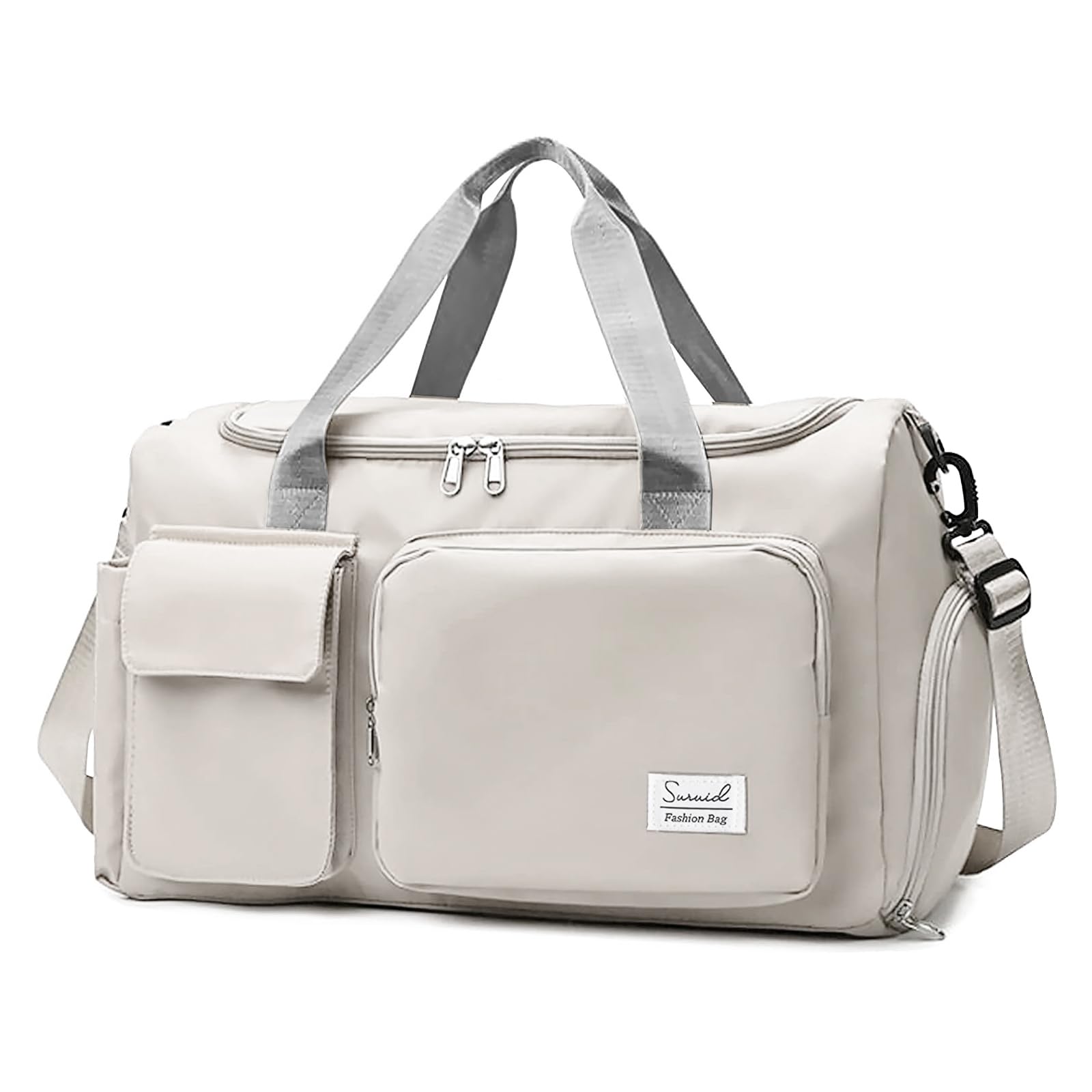 Suruid Travel Duffel Bag with Shoes Compartment Sports Gym Bag with Dry Wet Separated Pocket for Men and Women, Overnight Bag Weekender Bag Training Handbag Yoga Bag - White Gray