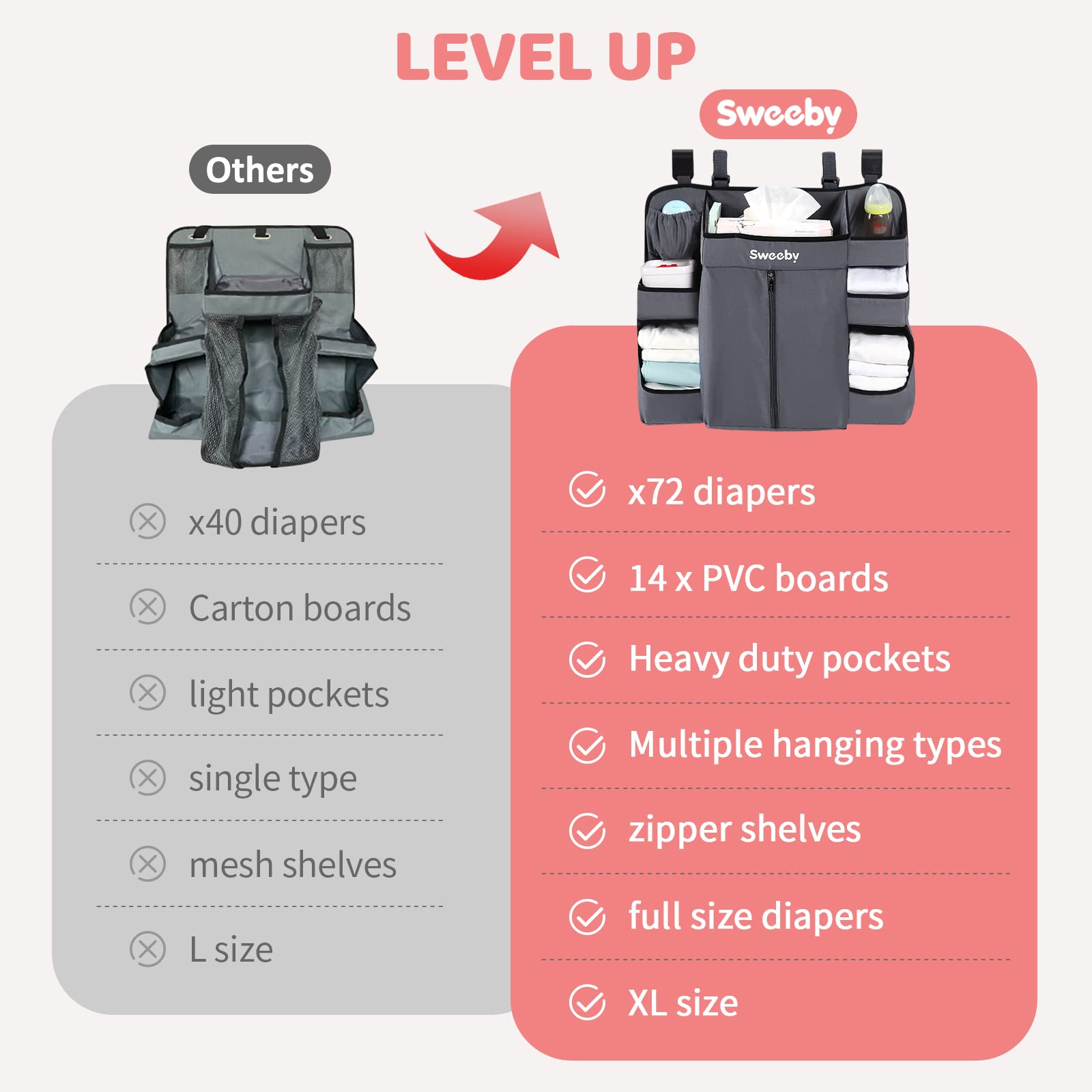 Sweeby Diaper Organizer for Changing Table and Crib - Nursery Diaper Stacker Hanging Caddy for Baby Essentials