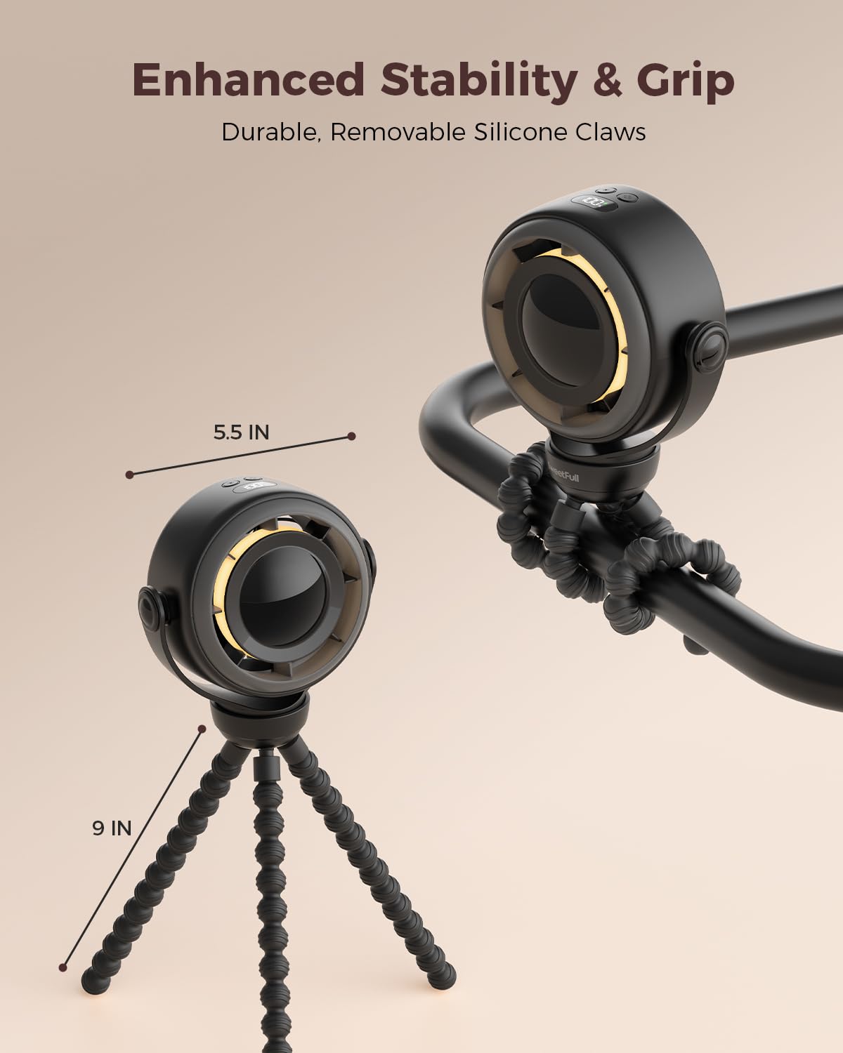 SWEETFULL Baby Stroller Fan - 4000mAh Rechargeable 4-Speed Quiet with LED Display & Night Light, Mini Portable 360° Clip On Safe Fan for Car Seat, Crib, Travel - Black