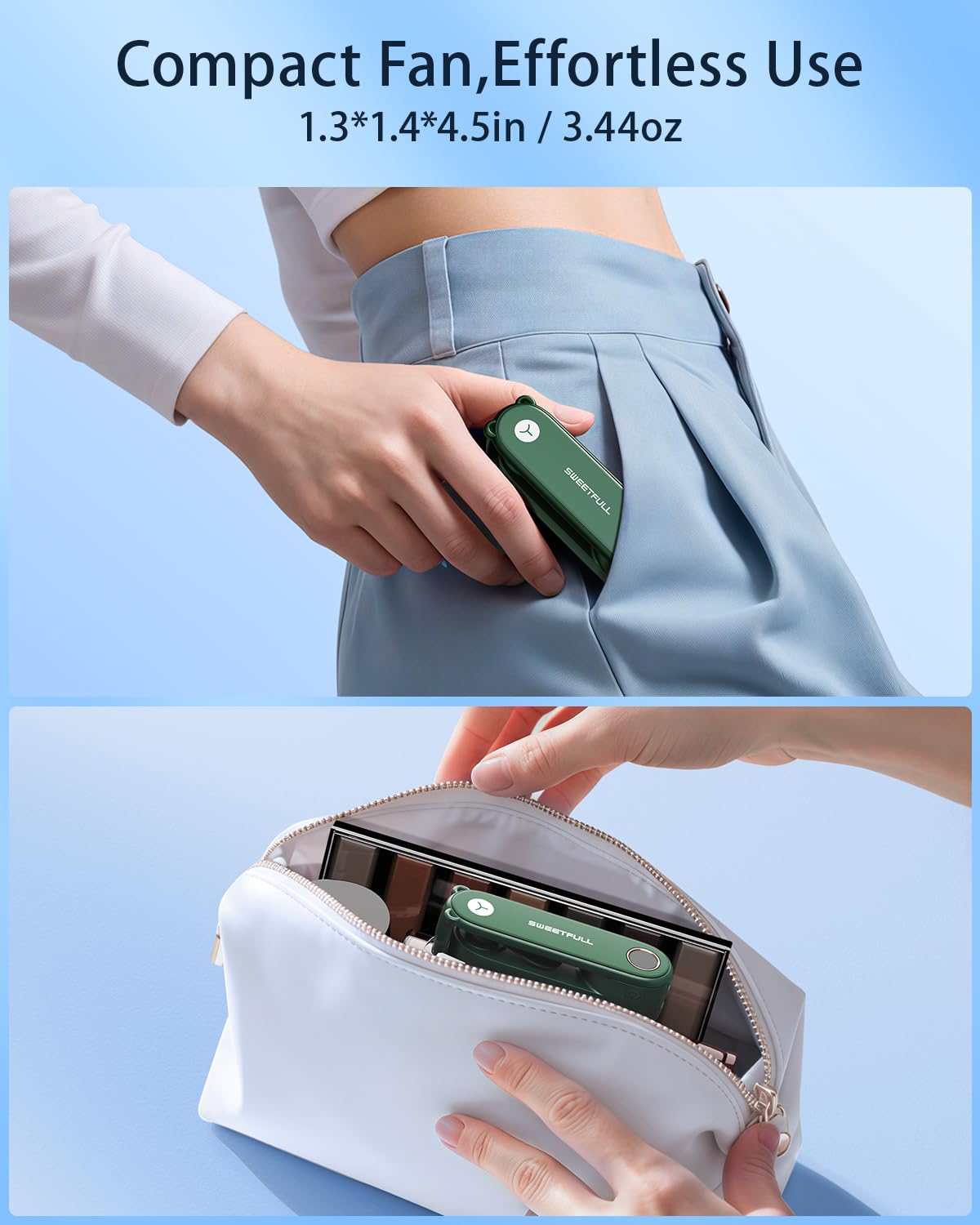 • Emergency Flashlight Function: SWEETFULL handheld fan doubles as a convenient flashlight(press twice to activate.), ensuring preparedness for nighttime adventures or unexpected situations—a must-have hand fan for travel and outdoor activities.