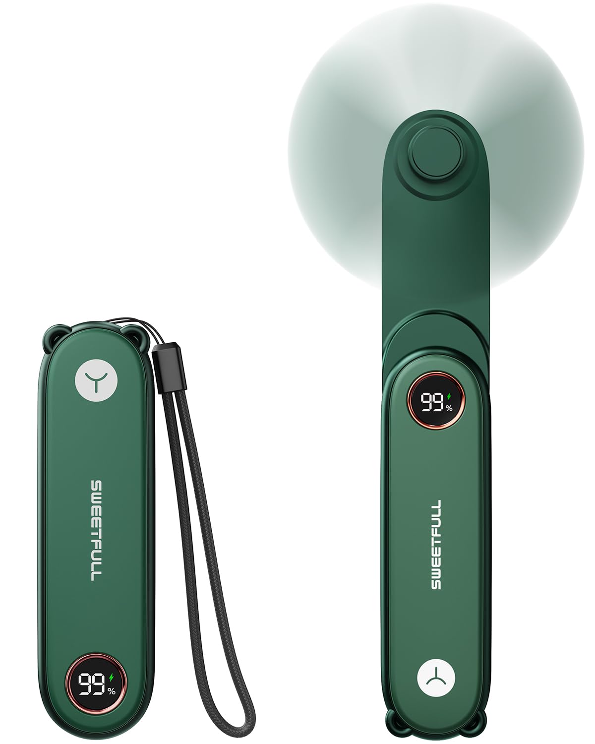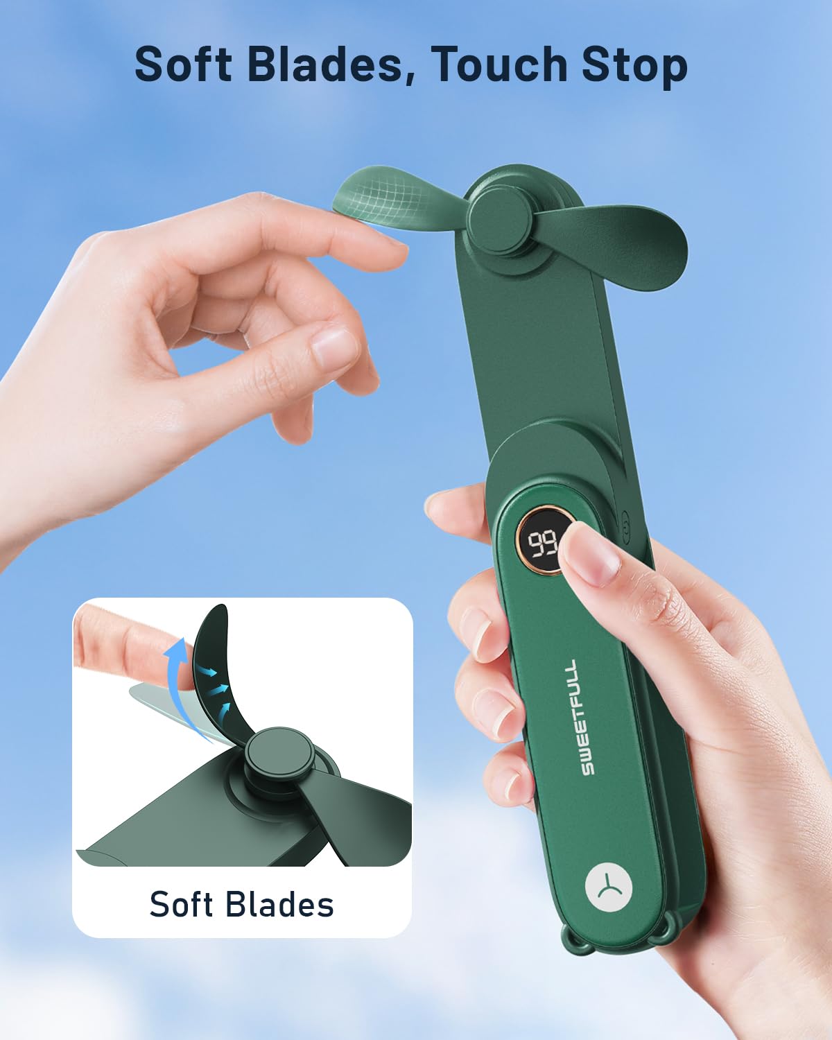 SWEETFULL Portable Handheld Mini Fan with LED Display, 3-in-1 Personal Foldable USB Rechargeable Hand Held Fan & Flashlight for Travel, Lash Eyelash, Cute Small Pocket for Women, Girls