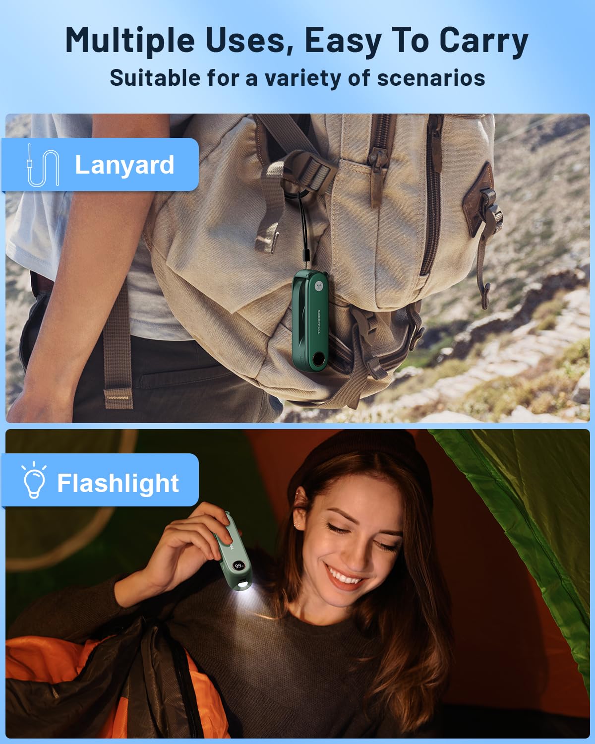 • Foldable & Portable: The nail-friendly opening, 360° foldable design allows it to easily slip into your pocket or hang around your hand (lanyard included), making it suitable as a handheld personal fan and a mini cooling accessory