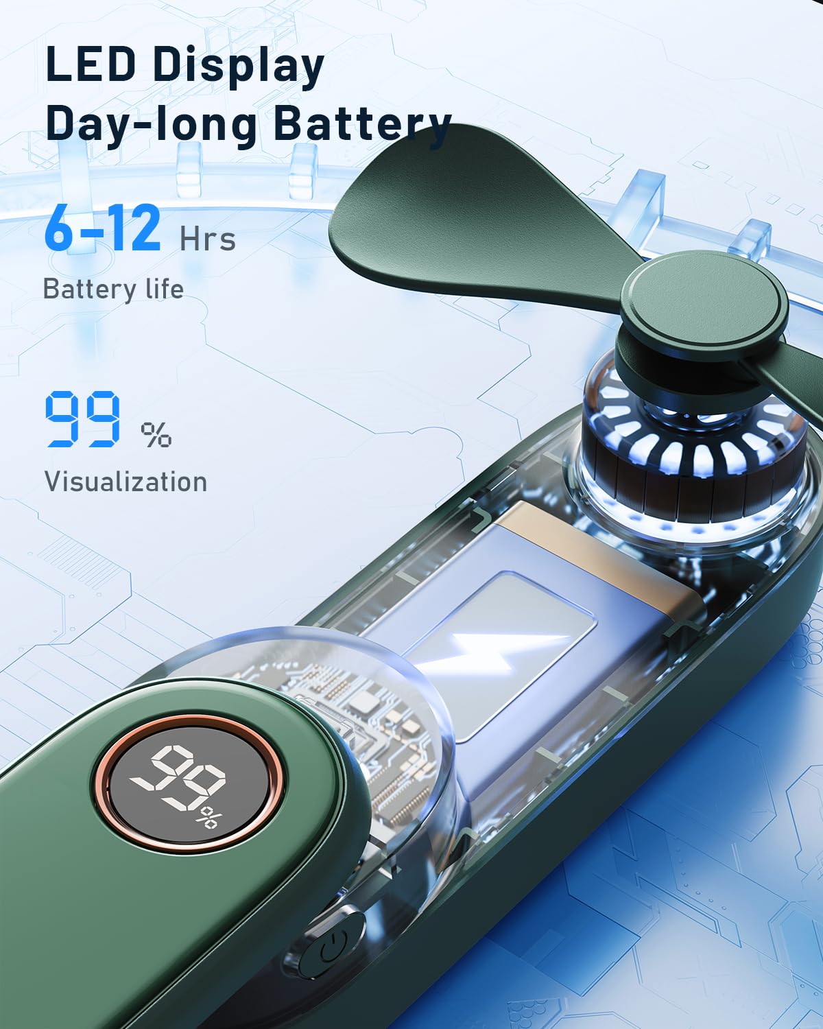 • 6-12 Running Hrs & LED Display: This portable fan features a rechargeable battery, The LED display shows real-time battery levels, ensuring you stay cool all day—an ideal gift for girls, moms, and women
