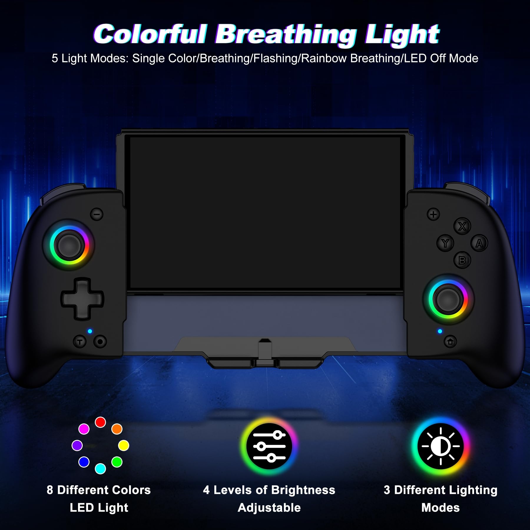 Switch Controllers Compatible with Nintendo Switch/OLED, One-Piece Joypad Controller Replacement for Switch Pro Controller with 9 Lights Color, Switch Remote for Users Who Prefer Handheld Mode