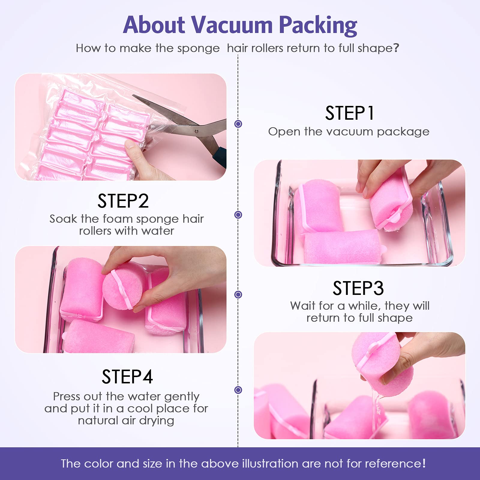 • Vacuum packing: the sponge hair rollers are packed in vacuum, we suggest that after receiving the product, soak the foam sponge hair rollers with water to make them return to full shape first, then press out the water gently and put it in a cool place for natural air drying; Then it can start creating beautiful curls for you