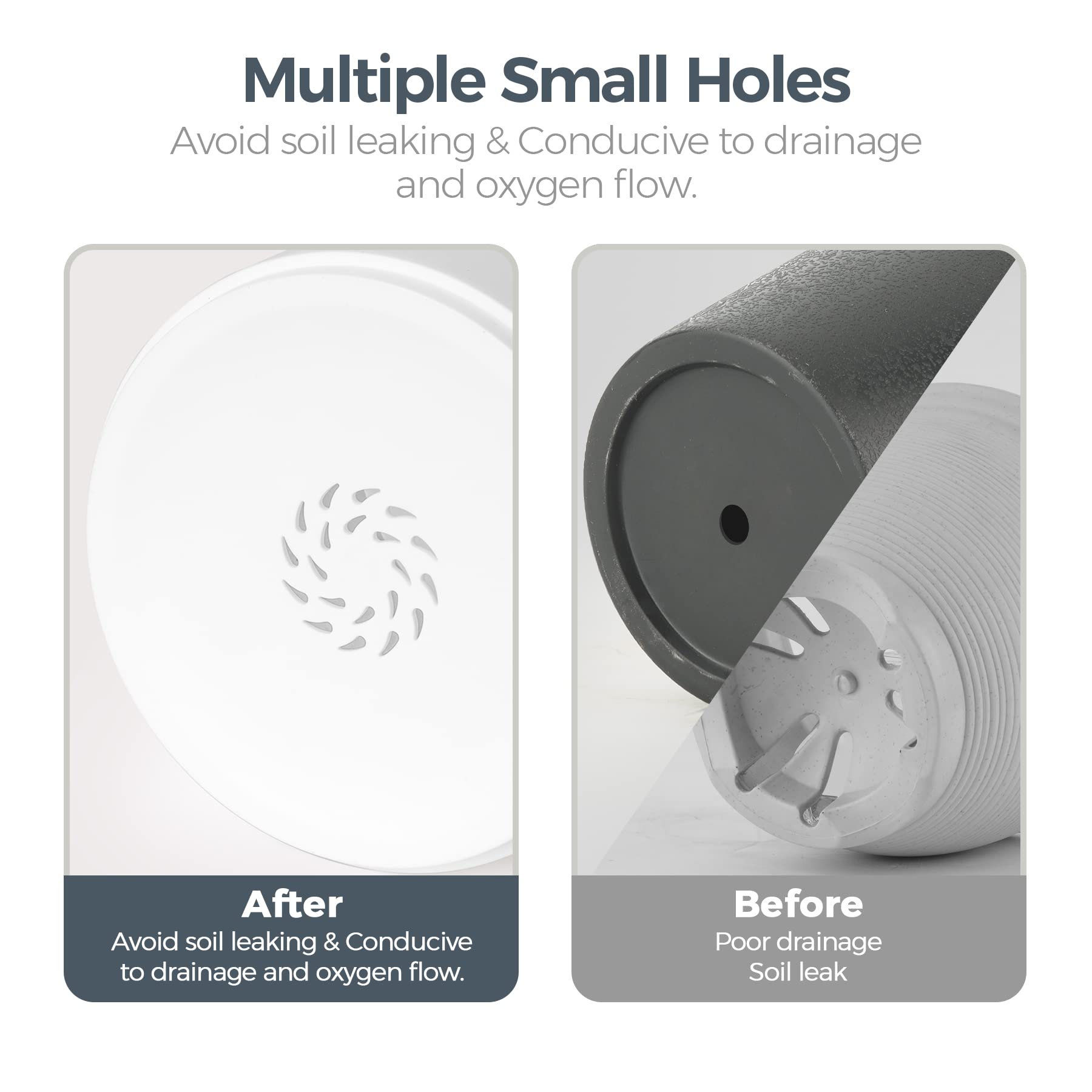 • Improved drainage hole design: at the bottom of the flower pot there are many dense small drainage holes. This ingenious design solves the problem of conventional drainage holes.
