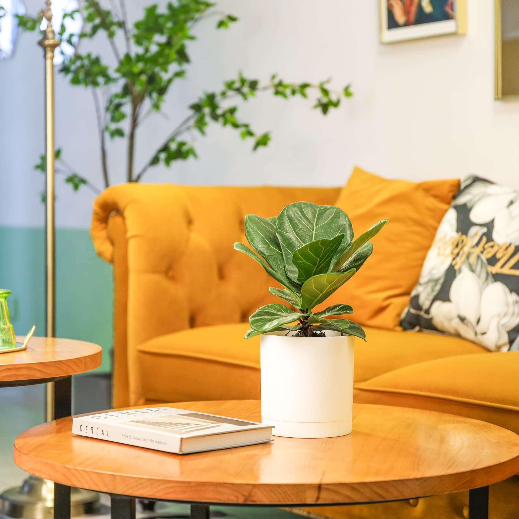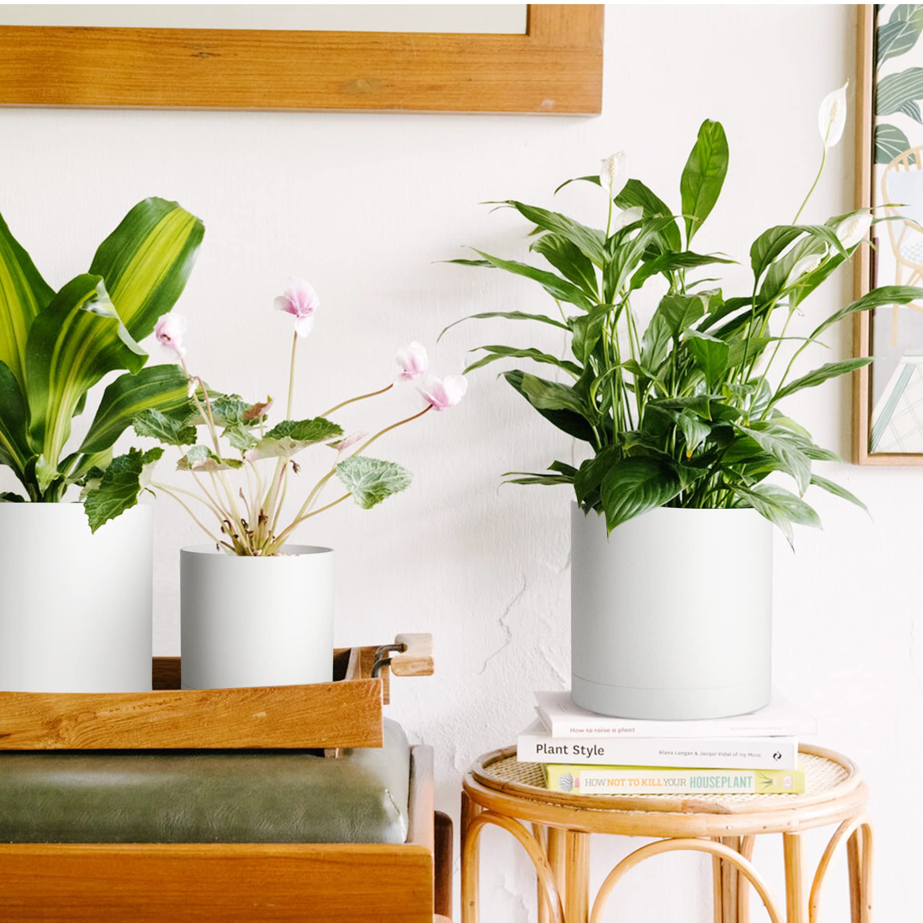 T4U 10/12.5/15/17.5 cm Plastic Flower Pot with Multiple Drainage Holes, Set of 4 Planters, Herb Pot with Saucer, Round Plant Pot for Indoor and Balcony Succulent Cactus, White