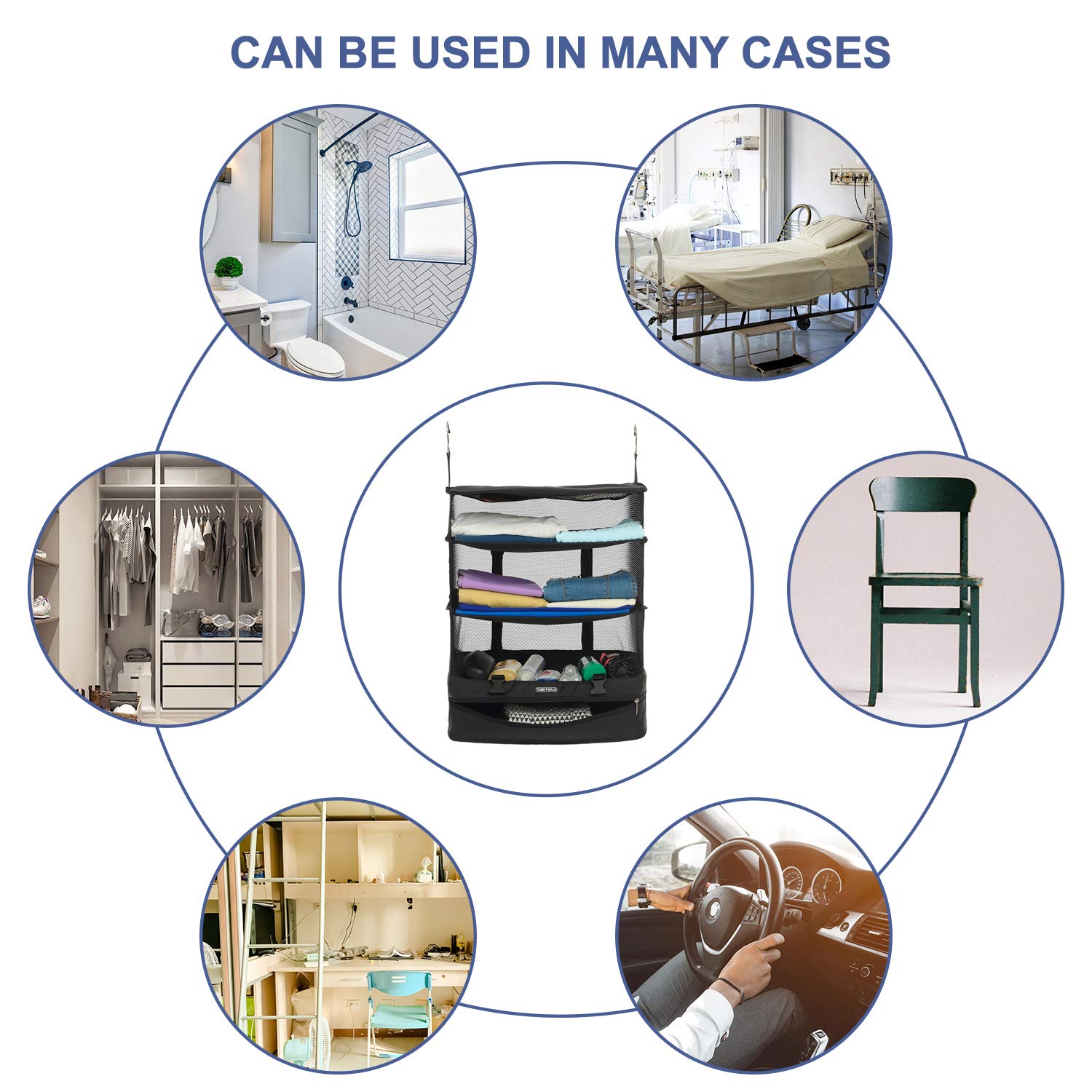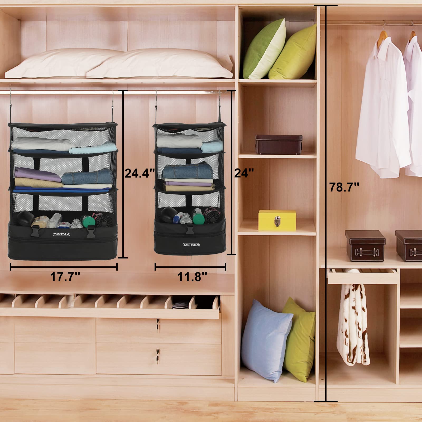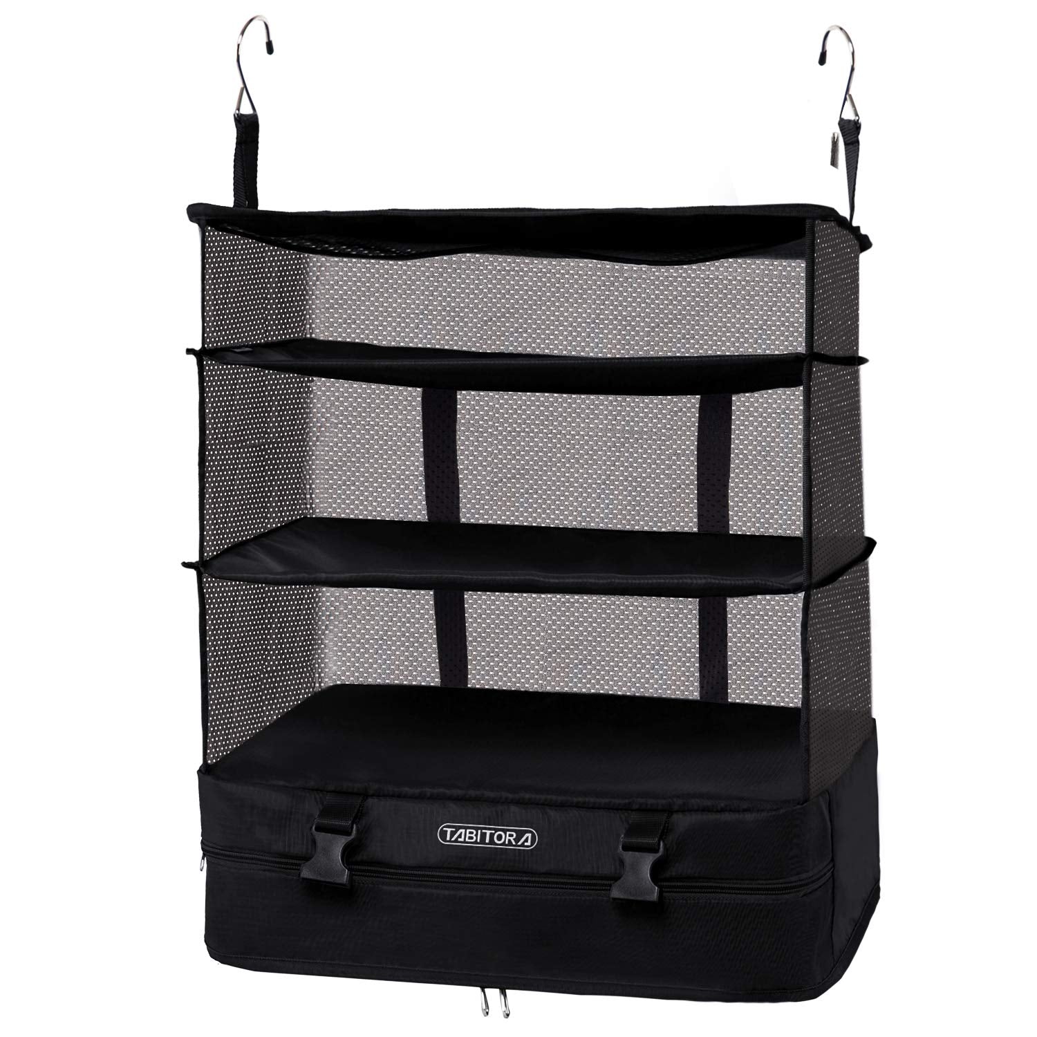 TABITORA Portable Hanging Travel Shelves Bag Packing Cube Organizer Suitcase Storage Large Capacity (Black XL)