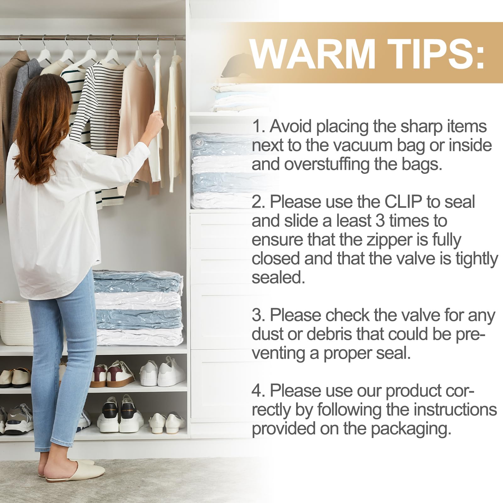 • Meets Different Requirements: Our bags are made of strong material to meet various purpose such as bedroom storage, moving storage, college dorm room essentials storage closet organizers and storage. It will be more convenient to seal the space saver vacuum storage bags by using the clip in the bags