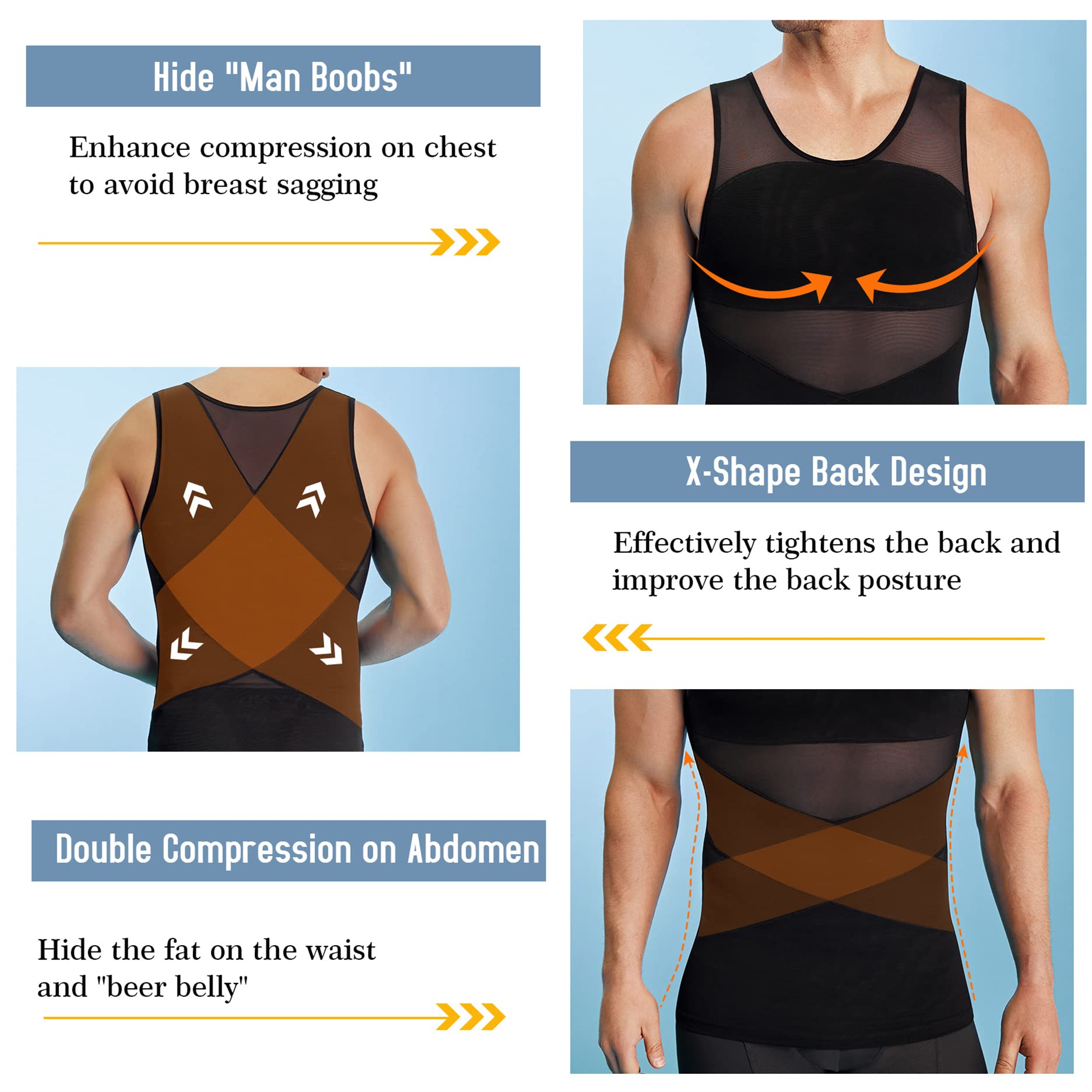 • Excellent comfort: this men's slimming undershirt is made of nylon and spandex, the breathable and ultra soft fabric for the best in next-to-skin comfort with this abdomen compression shirt, while the mesh design provides targeted ventilation. Whether you want to look your best in the gym or underneath your work clothes, our slimming compression undershirt can be counted upon to slim your torso and present your best figure possible.