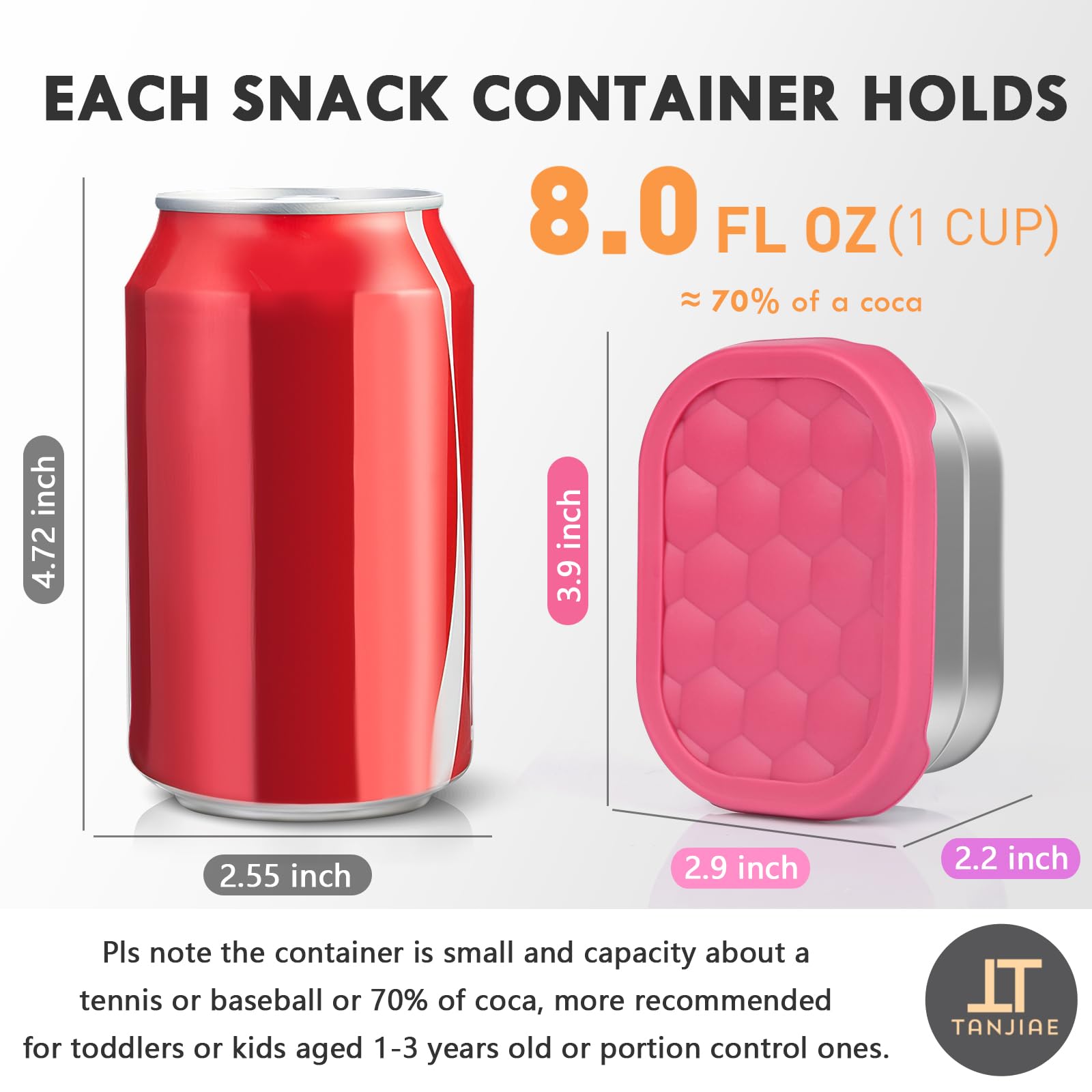 Tanjiae Small (1 CUP) Stainless Steel Snack Containers for Kids | Easy Open Leak Proof Food Containers with Silicone Lids - Perfect Metal Toddler Lunch Box for Daycare and School (8oz)