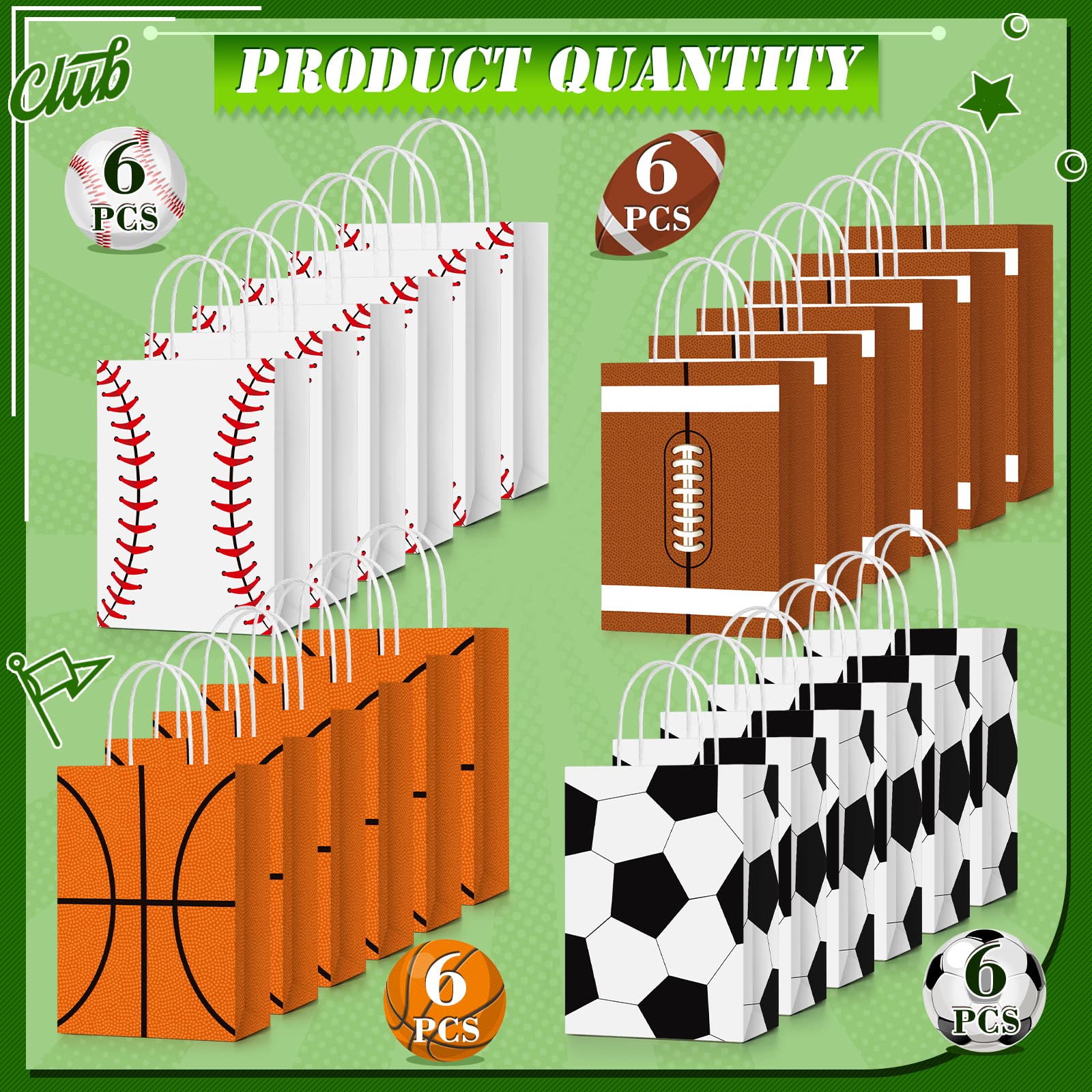 TaoBary 24 Pieces Sports Party Favor Bags Soccer Baseball Goodie Gift Bag with Handles for Football Basketball Baseball Sports Birthday Baby Shower Party Supplies Decoration