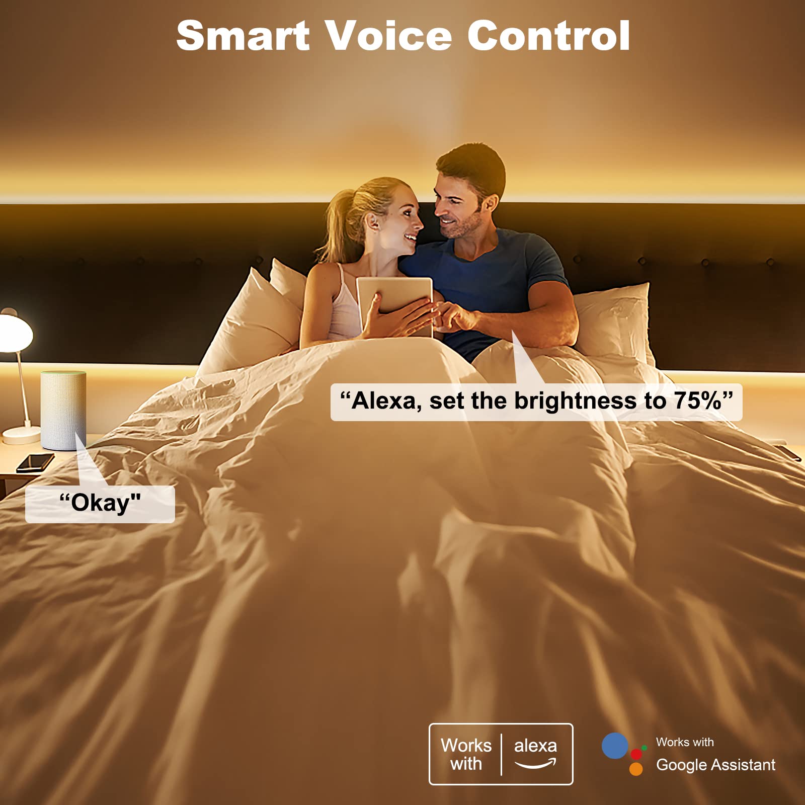 • Hands-Free Voice Control: TATAZONE smart cob led strip light kit for bedroom work with Alexa and Google Assistant. Turn on/off and adjust brightness with simple voice commands.