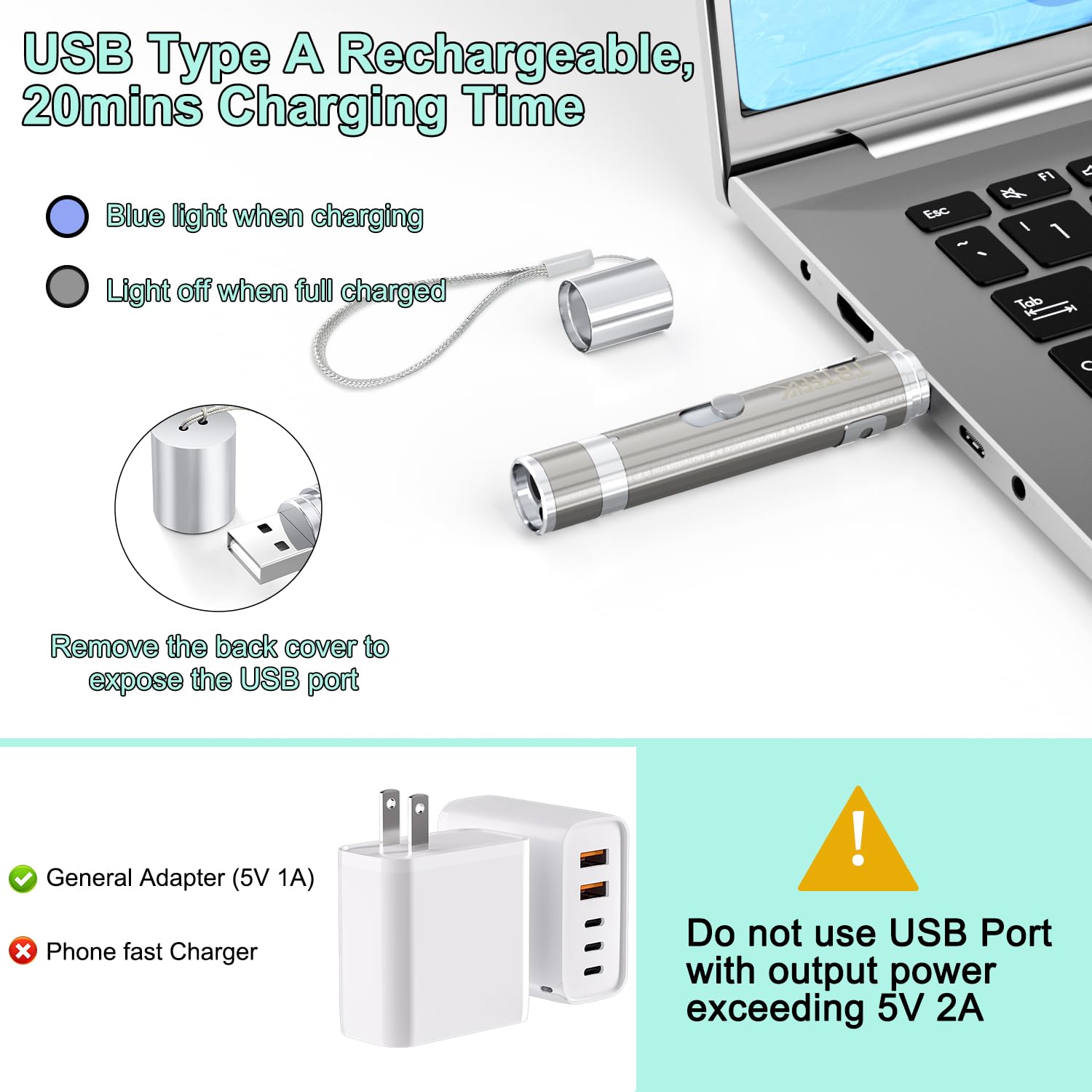 • USB Direct Charging: No dry batteries needed! Unplug the back cover and plug into USB port (adapter/computer/car) to charge, about 20mins fully charged.