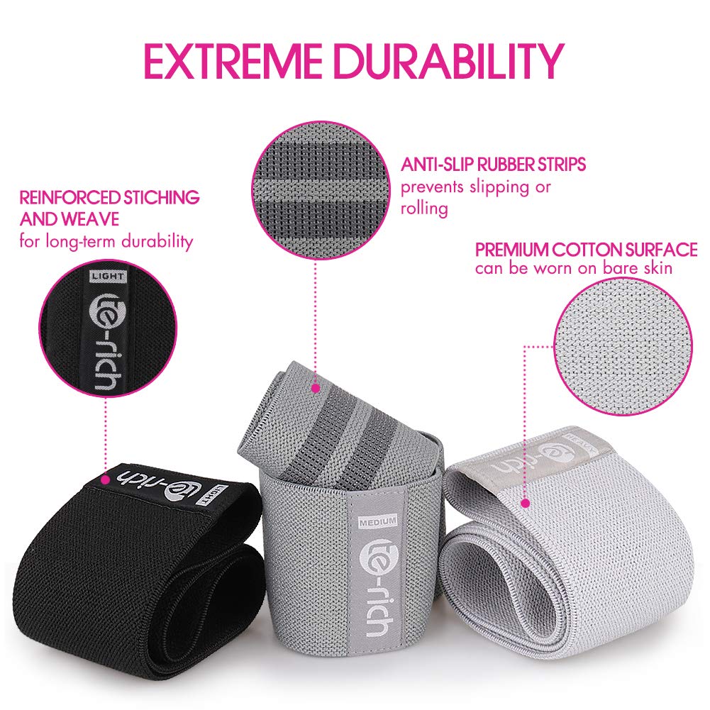 Te-Rich Resistance Bands for Legs and Butt, Fabric Workout Loop Bands, Set of 3
