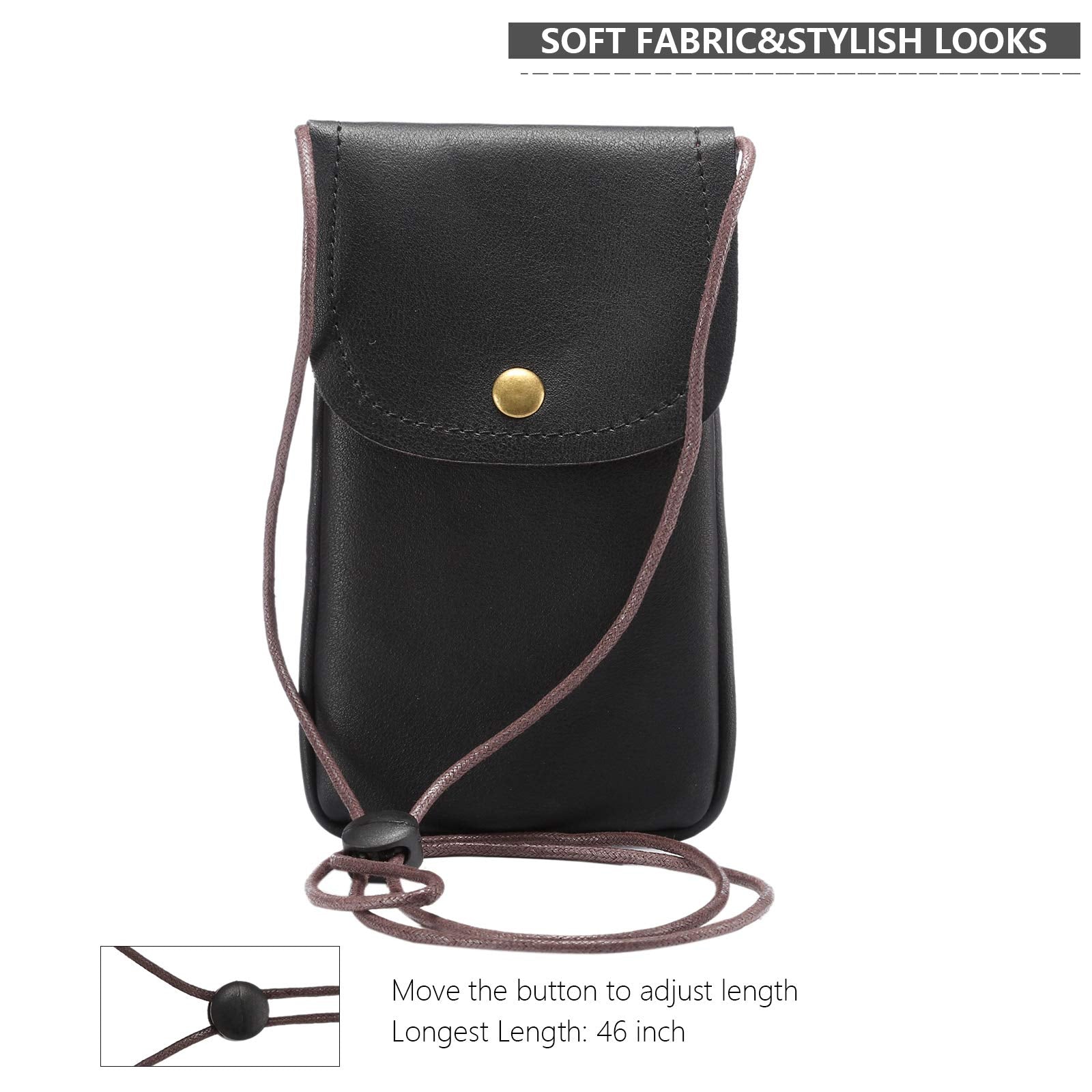 • ★ Comes with a NOT so long strap (46' max.) which you can adjust the length through moving the slide buckle, it's better to hang the bag around your neck. Also, you can wear this pouch as a small crossbody purse for children or teenager.
