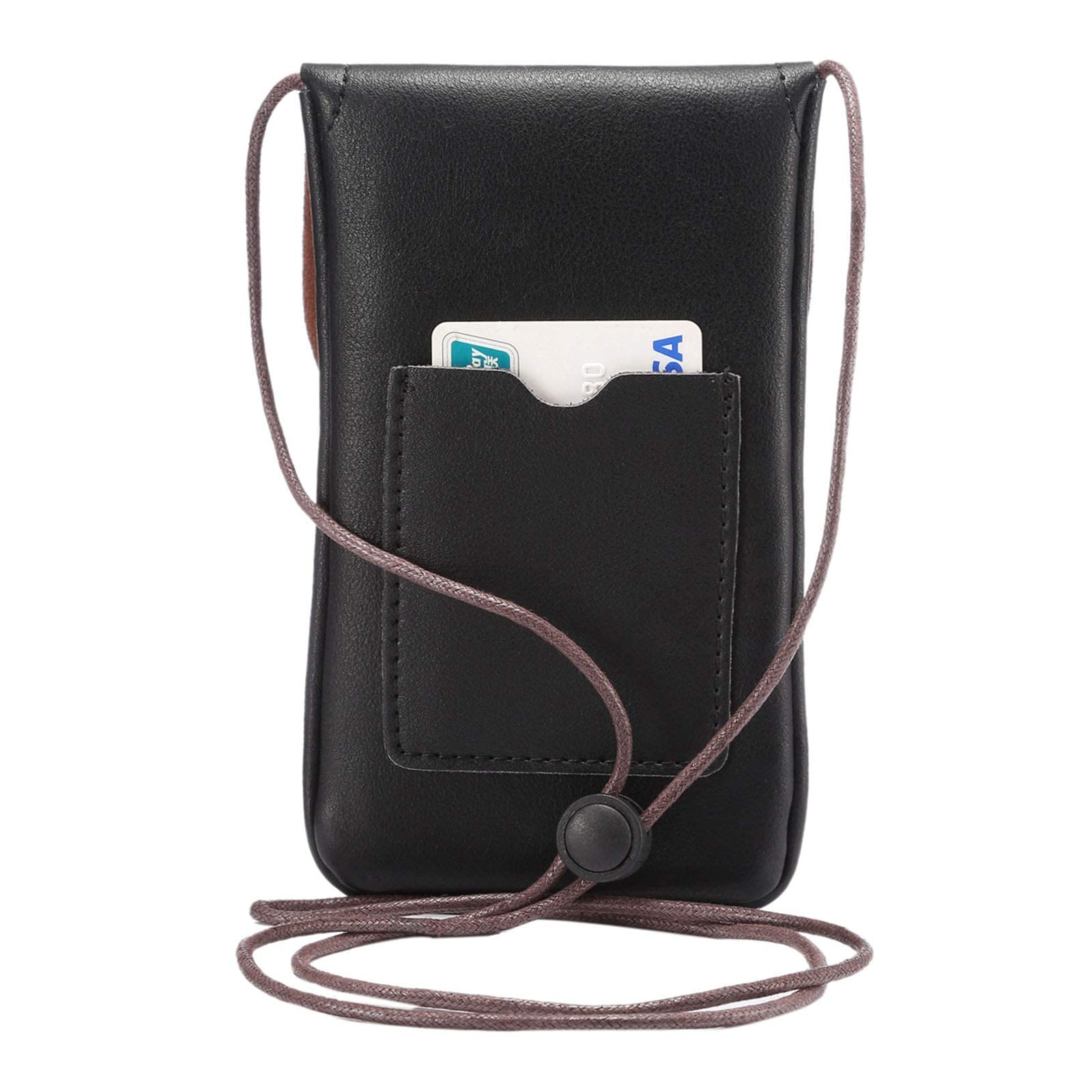Techcircle Cell Phone Neck Pouch PU Leather Carrying Bag with Credit Card Holder Adjustable Strap, Small Travel Purse for iPhone 11 XR XS Max SE 8 7 6 Plus, Galaxy S10 S7 Edge A10 J7, Moto G6 (Black)