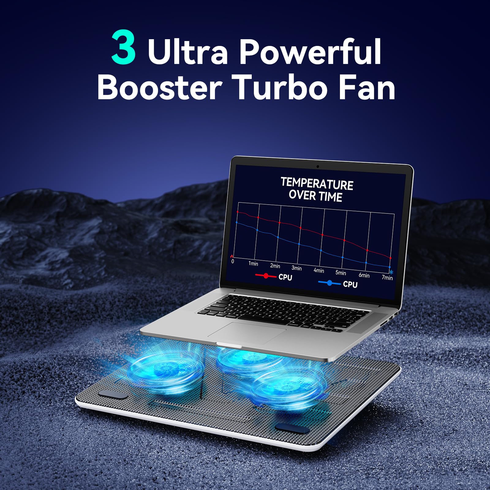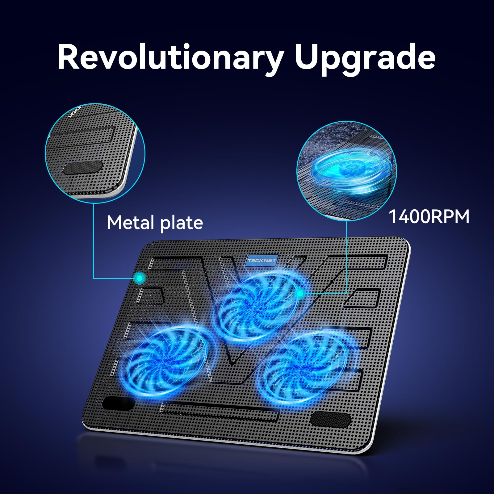 • 【Triple Efficient Fans】TECKNET laptop cooling pad with 3 powerful fans works at 1200 RPM to pull in cool air from the bottom to save your laptop, notebook, netbook, Ultrabook, Apple MacBook Pro cool from overheating due to long time on-line or gaming.