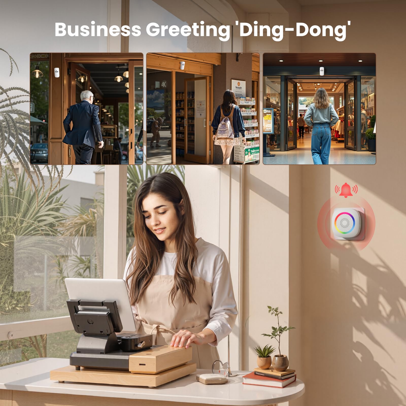 • 【61 Premium Melodies with 120dB Adjustable Alerts】Enjoy the industry's most extensive chime selection with 60 customizable melodies and 1 emergency alarm tone. Five precise volume levels (0-120dB) adapt to any environment, from quiet bedrooms to bustling storefronts. The exclusive silent mode maintains peace when needed.