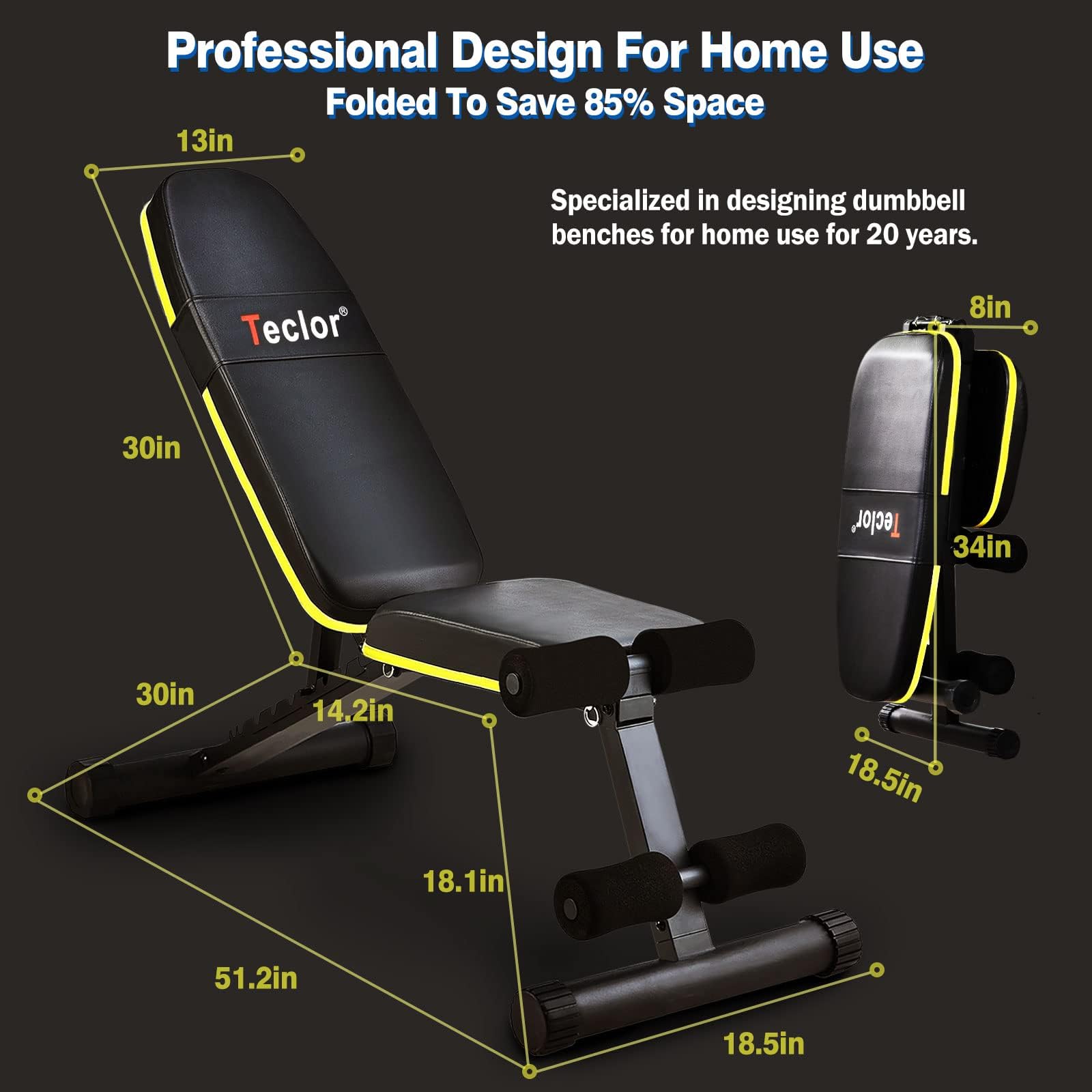 • 【Great Choice for Home Gym】Teclor basic adjustable weight bench is an perfect pick for beginners with complete features; Easy to assemble and is compact to transform every corner into your home gym.