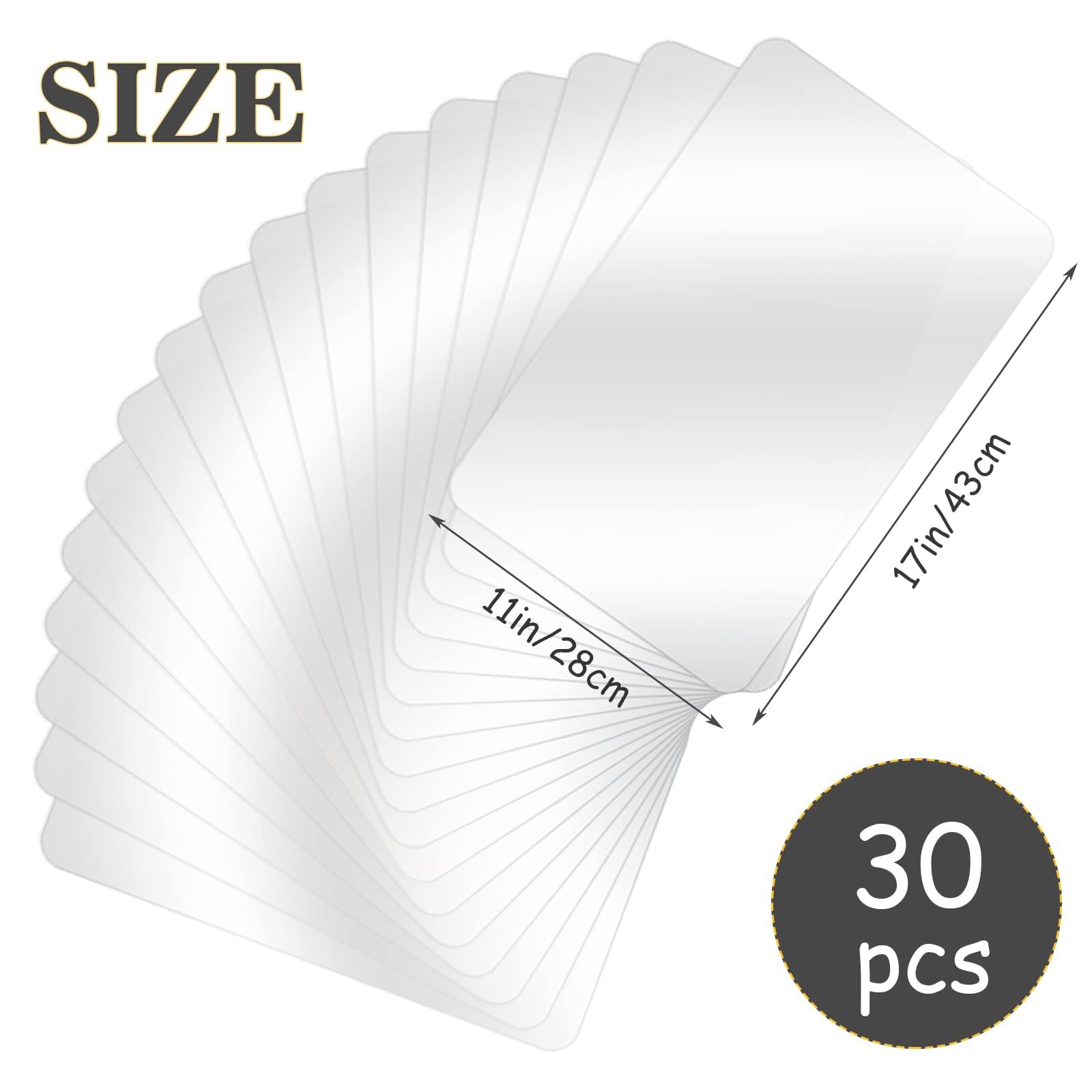 Tecmisse 30 PCS Plastic Placemat Heat Resistant Washable Table Mats, Clear Placemats for Table, Dining, Kitchen, Crafting and Shelf Liner, 17 x 11 Inch