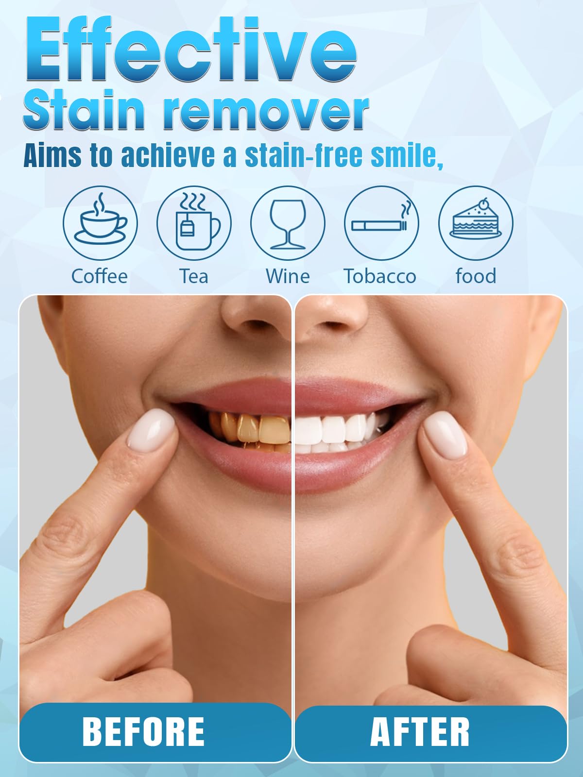 • Comfort and Smart Protection: The soft silicone mouth tray can be trimmed to fit any mouth size, perfect for sensitive individuals. An integrated smart timer ensures that you only need 15 minutes a day to achieve teeth whitening without disrupting your daily activities. Whether you're scrolling through your phone, reading, or binge-watching your favorite shows, Our teeth whiting kit for adults helps you remove stains from coffee, wine, or smoking, restoring your confident smile effortlessly.