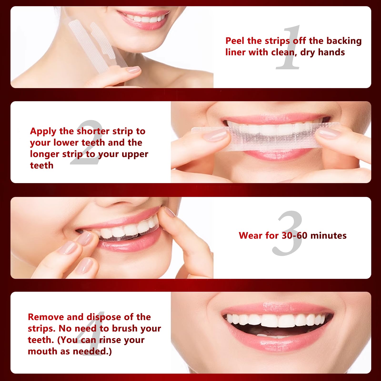 • Effective Stain Removal for White Teeth: Target and remove tough stains from coffee, tea, red wine, tobacco, and food with our professional-grade teeth whitening strips, containing Hydrogen Peroxide, Xylitol.