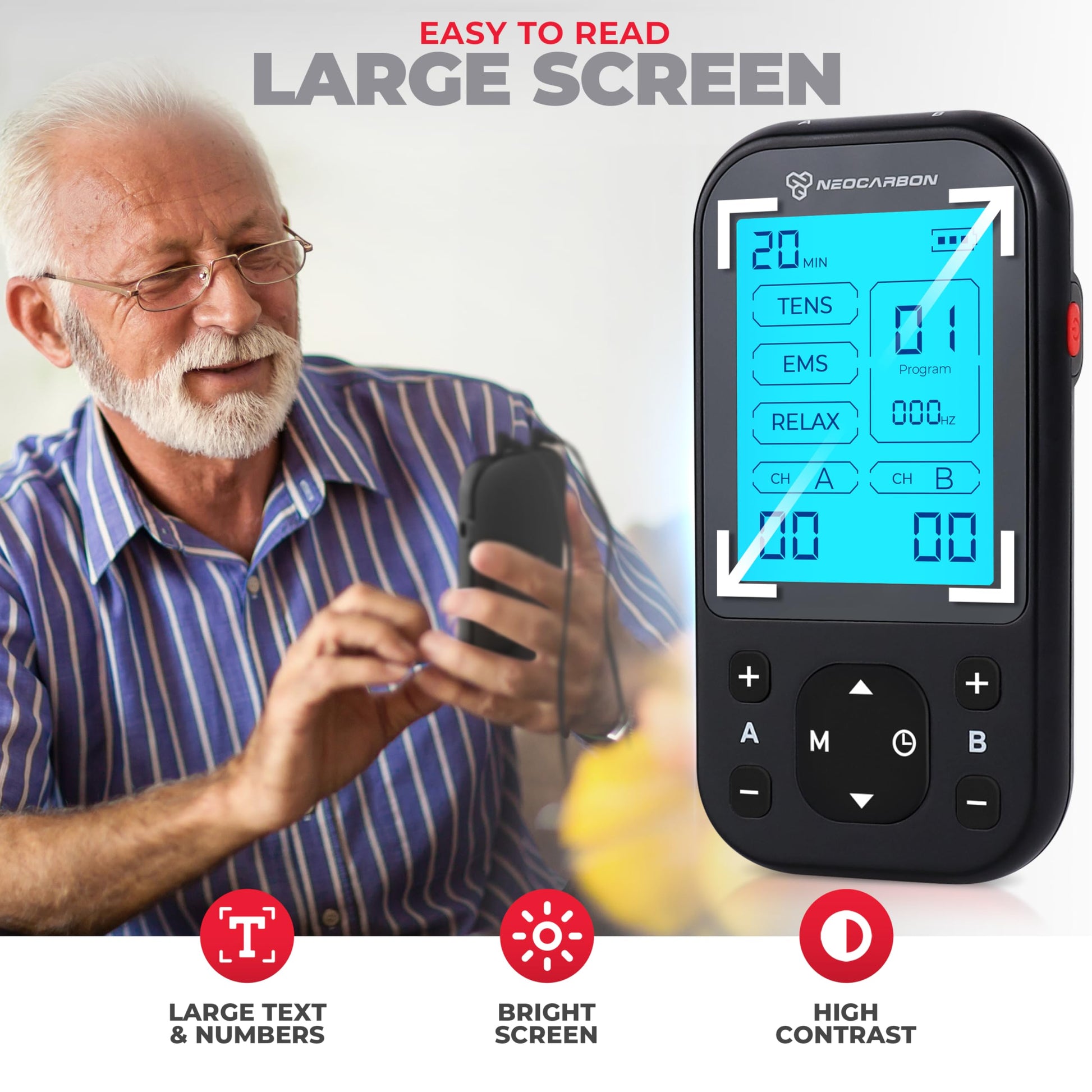 • Complete Pain Relief Kit: Neocarbon TENS PMS Unit Pro comes with a standard USB-C charging cable and 12 matching Electrode pads. Additionally, you'll receive 2 pad holders and a portable case for travel protection. With this kit, you have everything you need for a convenient and effective pain relief experience.