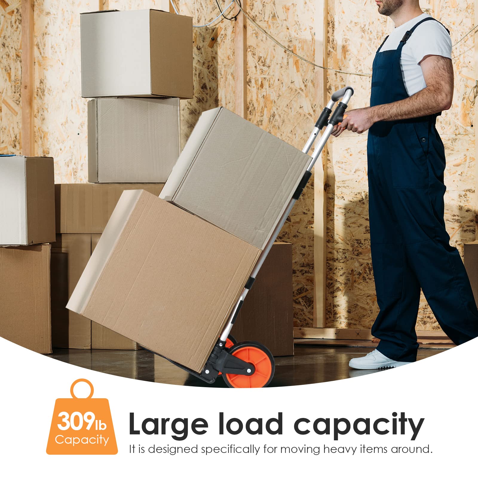 • 【Lightweight, sturdy and convenient】: Folding hand truck is perfect for home or office use, easy to carry and can be easily stored in the car trunk, under the bed, closet, storage room or garage. Easy solution to move a few boxes of water, pick up express parcels, garden potting soil, luggage handling, warehouse goods delivery, moving, office daily use, etc.