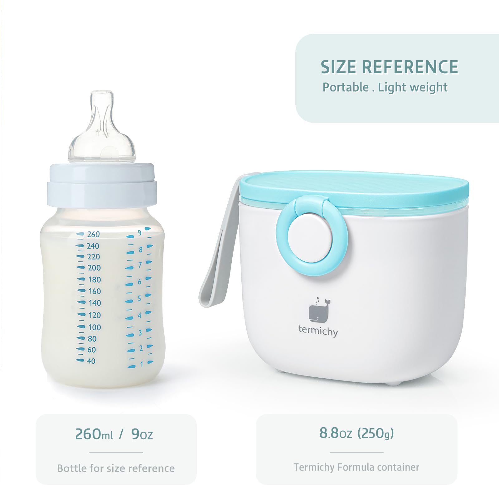 Termichy Baby Formula Dispenser, Portable Milk Powder Dispenser Container with Carry Handle and Scoop for Travel Outdoor Activities with Baby Infant, 8.8OZ, 0.55LB, 250g, 500ml (Baby Blue)