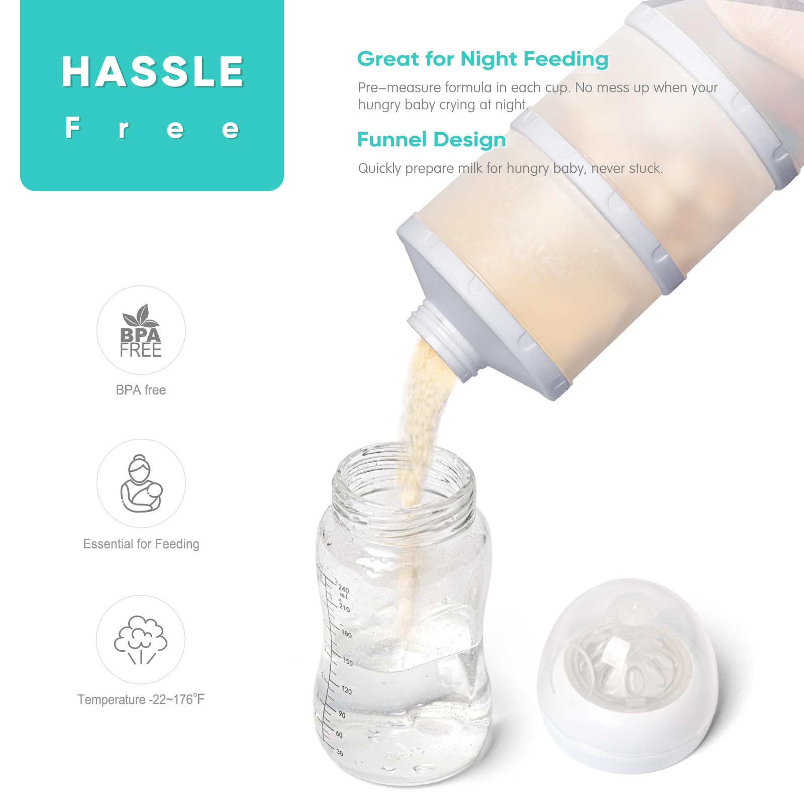 • Safe and Portable: The formula container is made of food-grade pp plastic, BPA free. Each container can hold 60g/ 2.1 oz milk powder. Easy baby feeding and parents stress free.