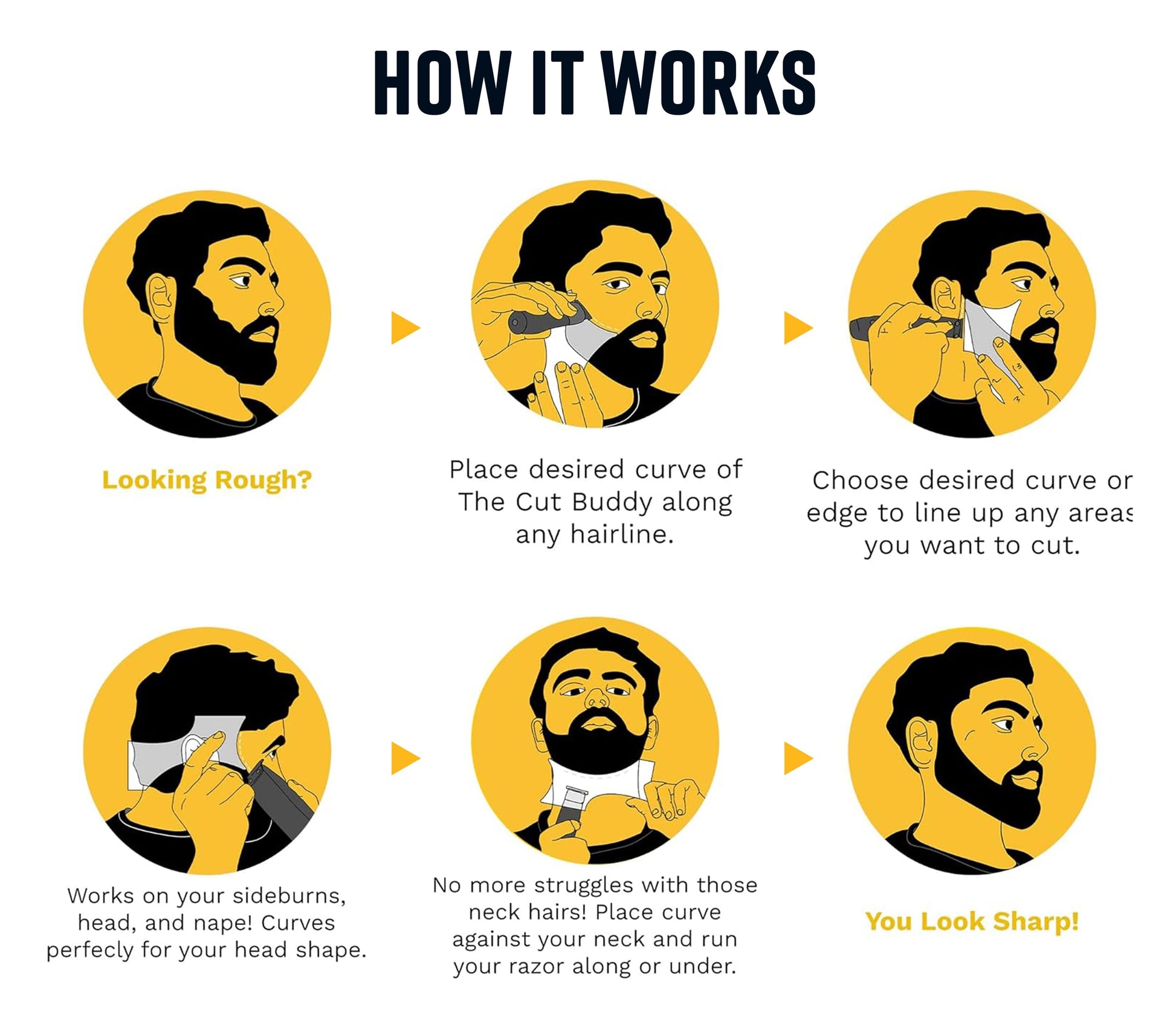 The Cut Buddy PLUS Beard Shaping Tool, Clear Template with Built-in Comb and Bonus Pencil, Ideal for Hairline, Beard, and Mustache Trimming