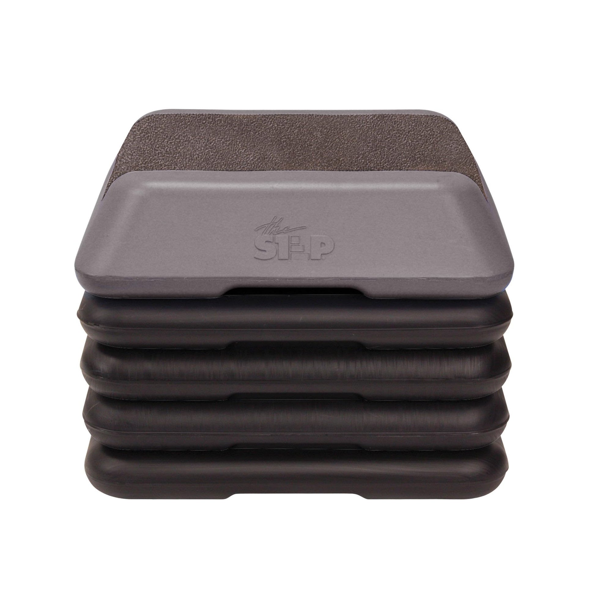 Details: Get more from your workout while minimizing space with The Step High Step. The Step is a great home-fitness tool for beginners to experts and is customizable for a variety of aerobic and strength exercises. This system includes a blue High Step platform and 4 original risers to create the foundation of any workout program. The platform features one (1) 13' x 9' stepping surface and four (4) risers (16' L x 16' W x 2' H). These sturdy risers can be used on any type of indoor flooring from carpet to concrete without leaving behind scratches. Burn more calories the higher you step with 4' to 6' to 8' to 10' to 12' platform height options using the included risers. Each High Step and riser are made with four nonskid feet to prevent sliding or moving during exercise. The risers and platform also feature a resistance band notch, which safely holds the band in place. Made in the United States, this set is crafted from durable, recyclable high-density polyethylene that supports up to 275 pounds (or up to 400 lbs. with risers). This product is backed by a 90-day manufacturer's warranty period