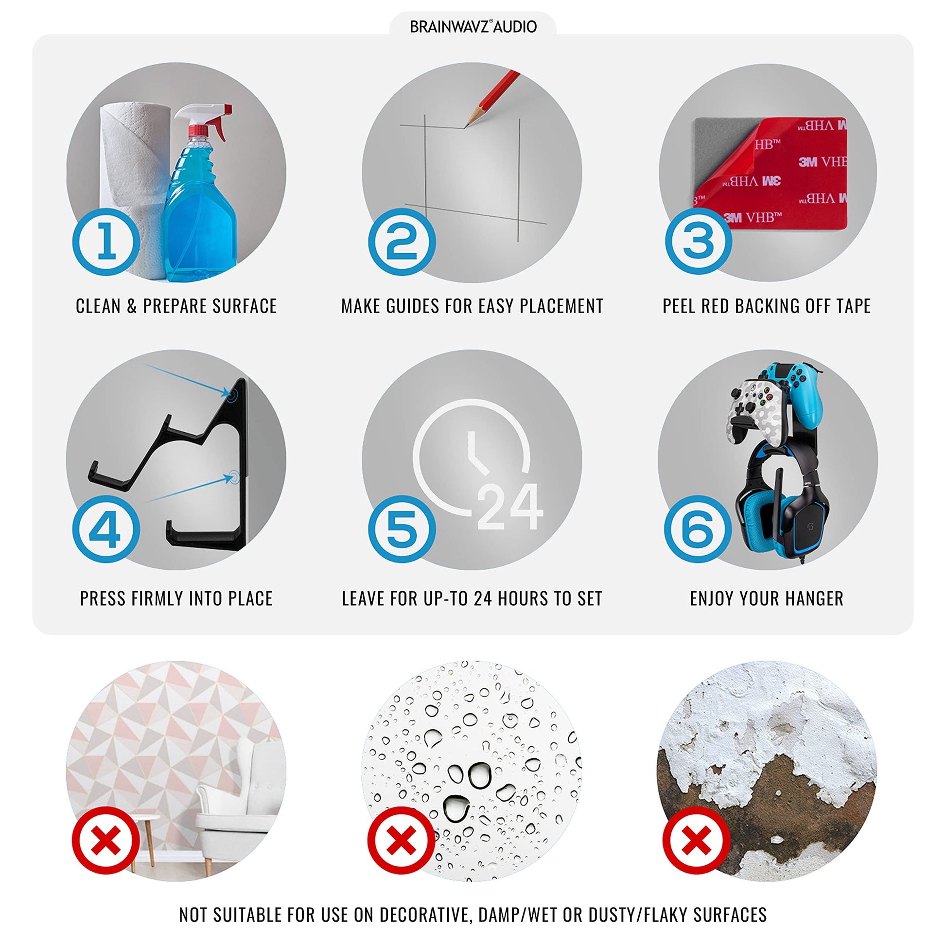 The UberAtlas Dual Game Controller & Headphone Stand Wall Mount Holder for Xbox ONE, Series X, PS5, PS4, PS3, Switch, STEELSERIES Gamepad & More, Stay Organized No Screws, by Brainwavz (Two Pack)