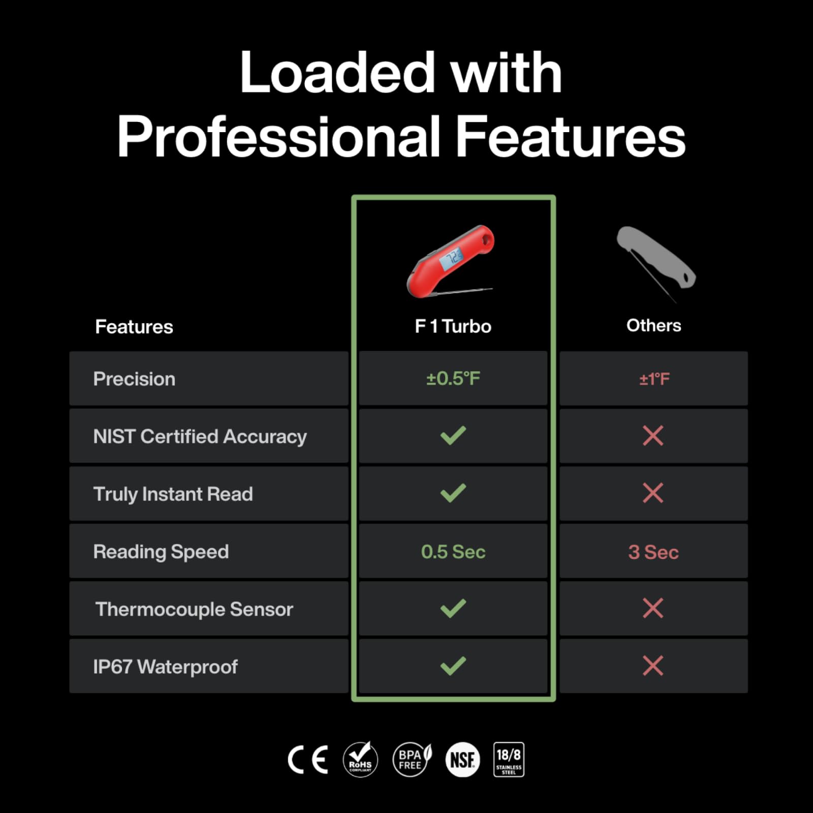 • 3X Faster 0.5s Readings: With cutting-edge Thermocouple applied temperature probe, ThermoMaven instant read meat thermometer for grill delivers speedy readings in just 0.5 seconds, 3X faster than the competitors, ensuring you always keep up with best cooking results.
