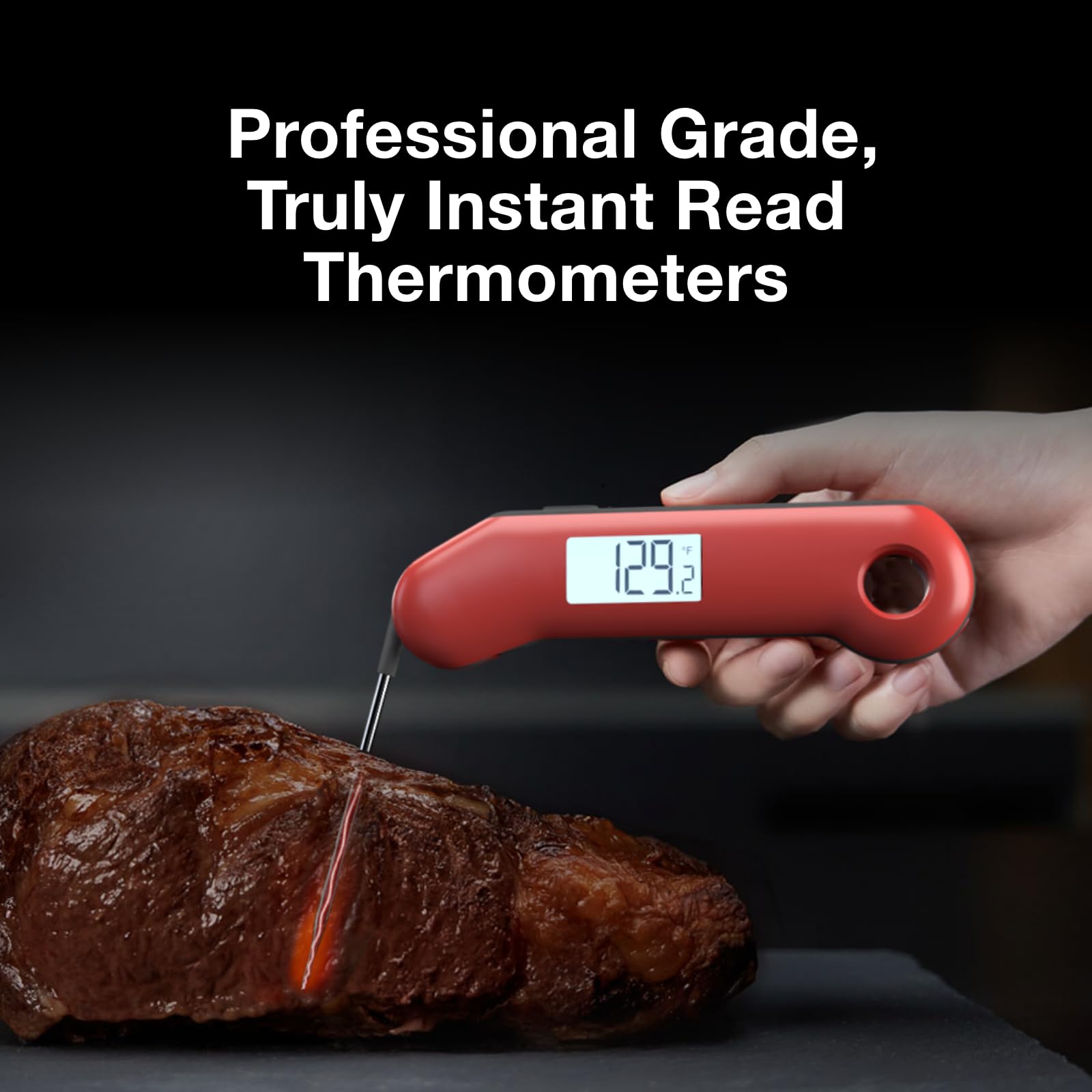 ThermoMaven ProfessionaI Meat Thermometer Digital, 3X Faster 0.5 Sec Instant Read, NIST Certified Accuracy ±0.5°F, 100% Waterproof Probe, Auto-Rotate Bright Indicator, for Candy/Grill/BBQ, Red & Gray