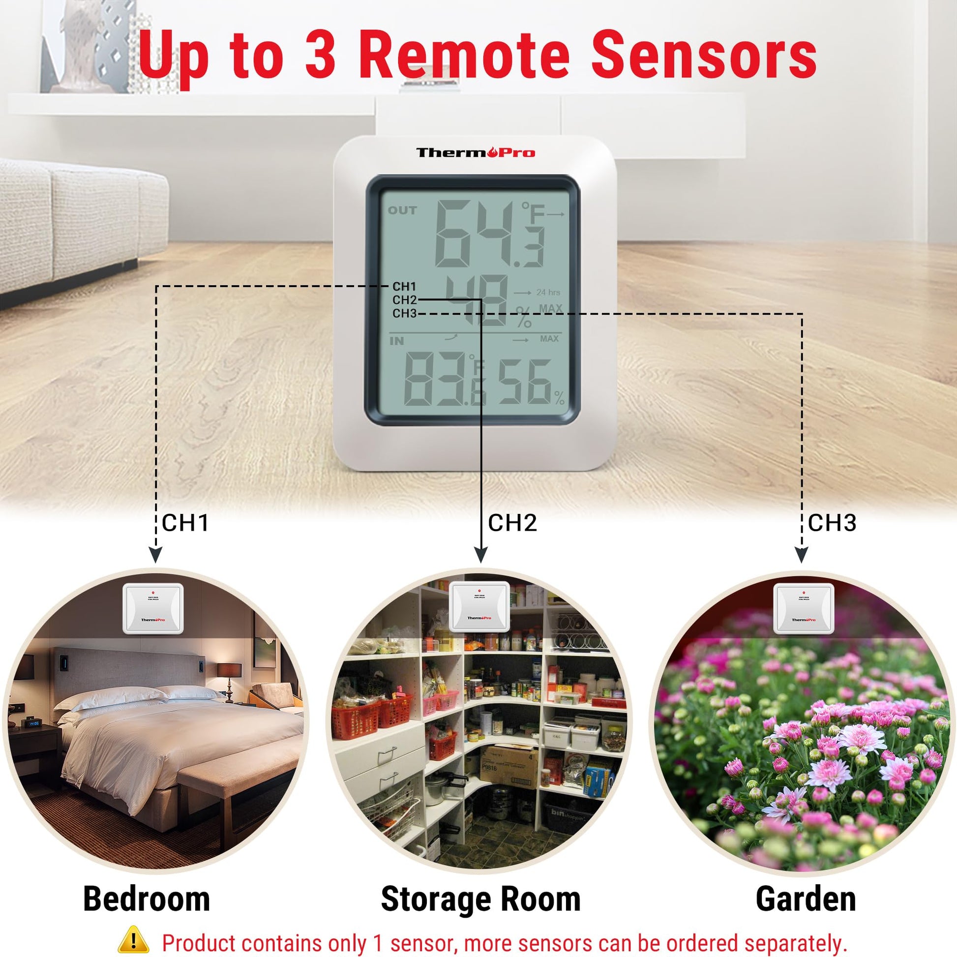 • Compatible with 3 Sensors: Temperature and humidity monitor can display the readings from up to 3 temperature sensors to monitor different locations; Additional sensor can be ordered