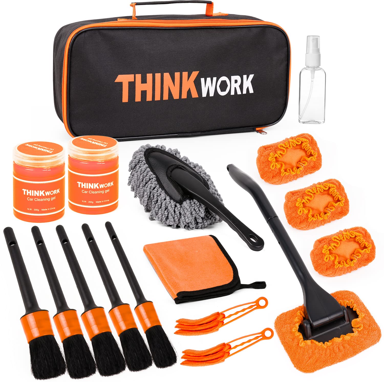 THINKWORK Car Detail Duster Kit - 17PCS Perfect Dust Removal Kit for Interior and Exterior, Detailing Brush, Cleaning Gel, Window Brush, Coral Fleece Towels and Cleaning Pads