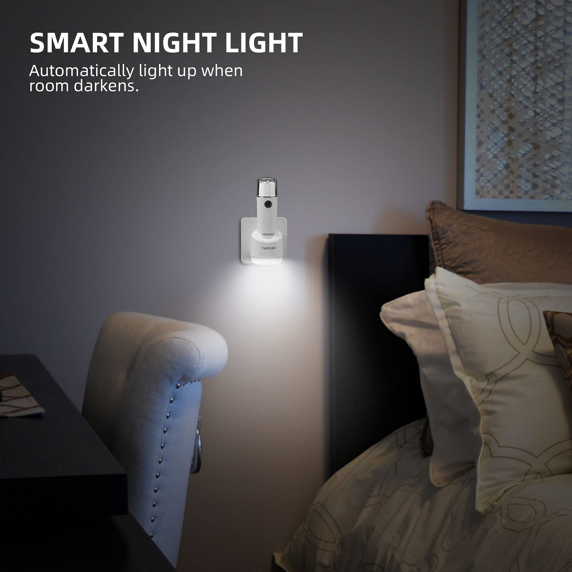 • SMART NIGHT LIGHT – also functions as a handy dusk to dawn night light that turns on automatically at dusk to gently illuminate your home.