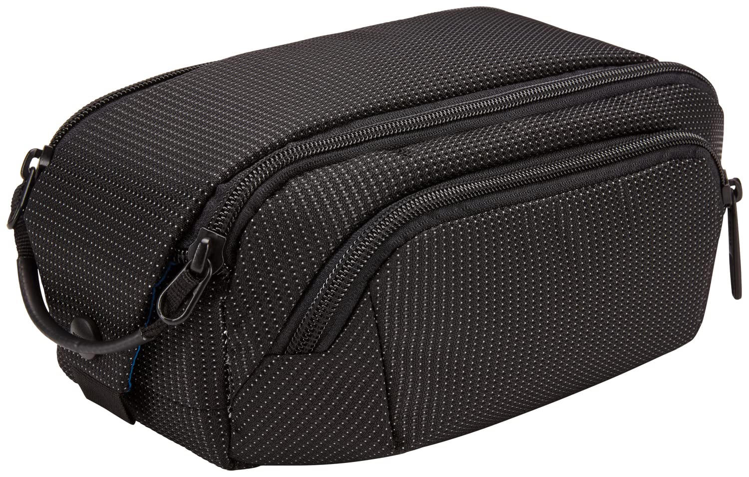 • Conveniently hang the bag by snapping the main compartment flap around a towel bar