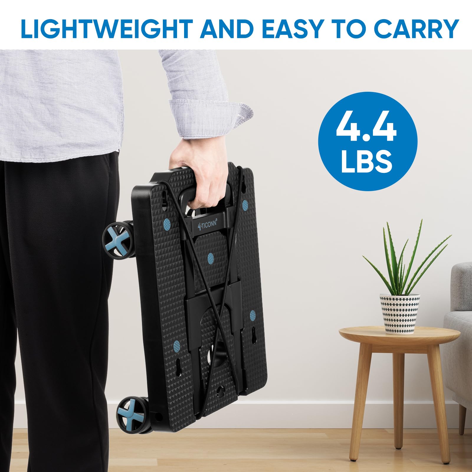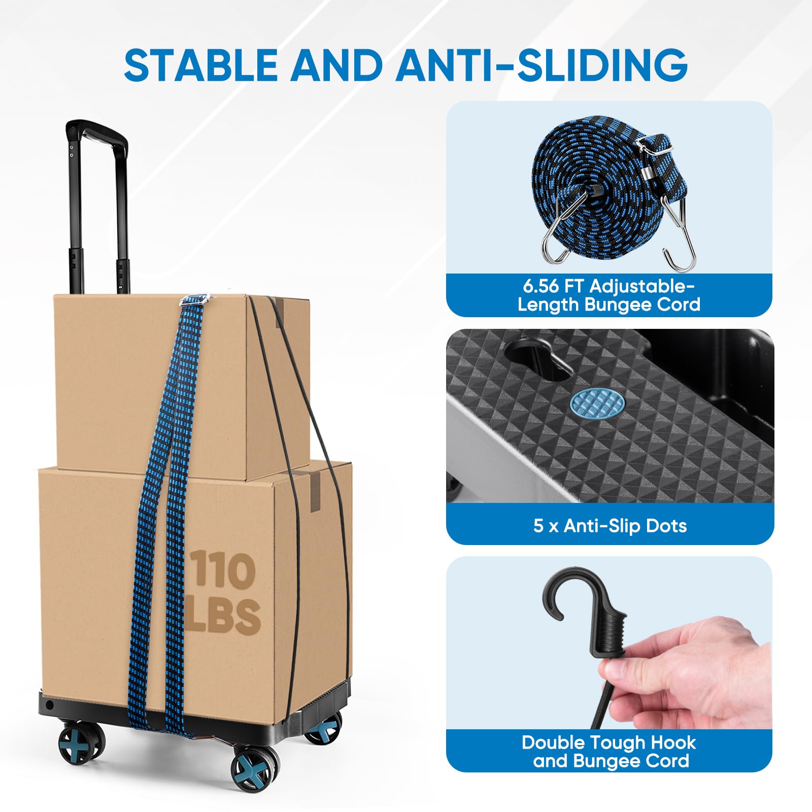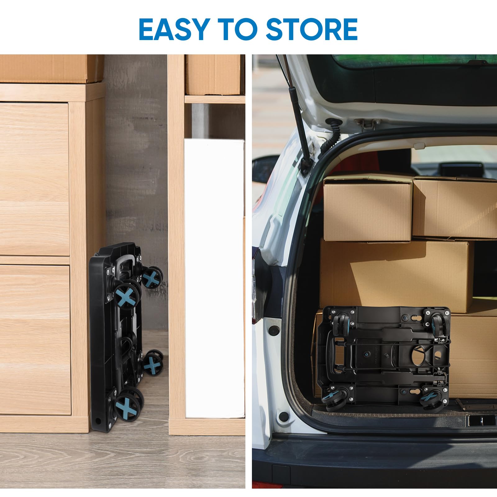 TICONN Folding Portable Dolly Cart, Black, 4-Wheel, 110 lbs Capacity, Adjustable Handle, Silent Wheels