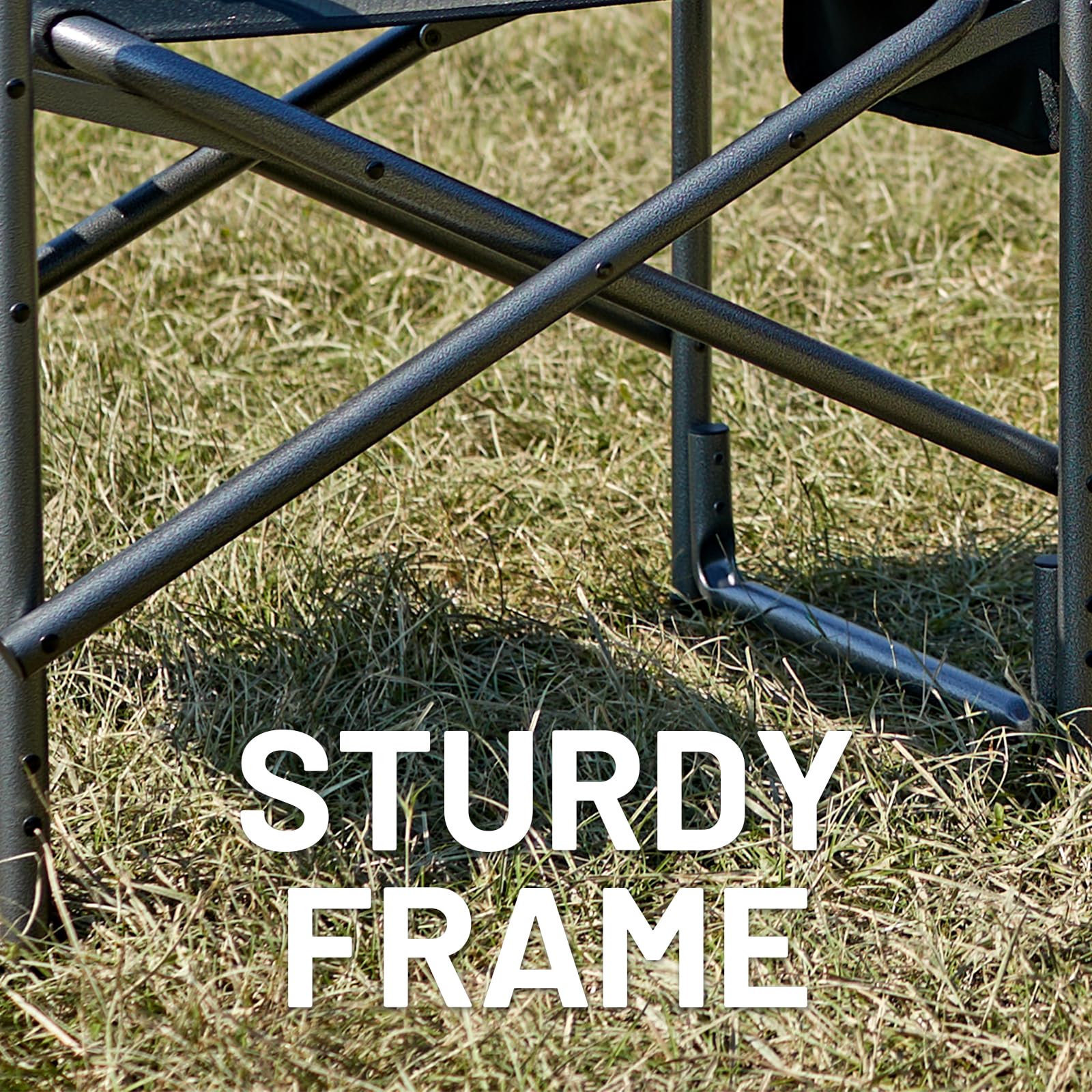 • CONVENIENT & COMFORTABLE FEATURES: The folding director's chair comes with a side table to keep belongings within reach; padded fabric and hard armrests provide extra comfort and relaxation.