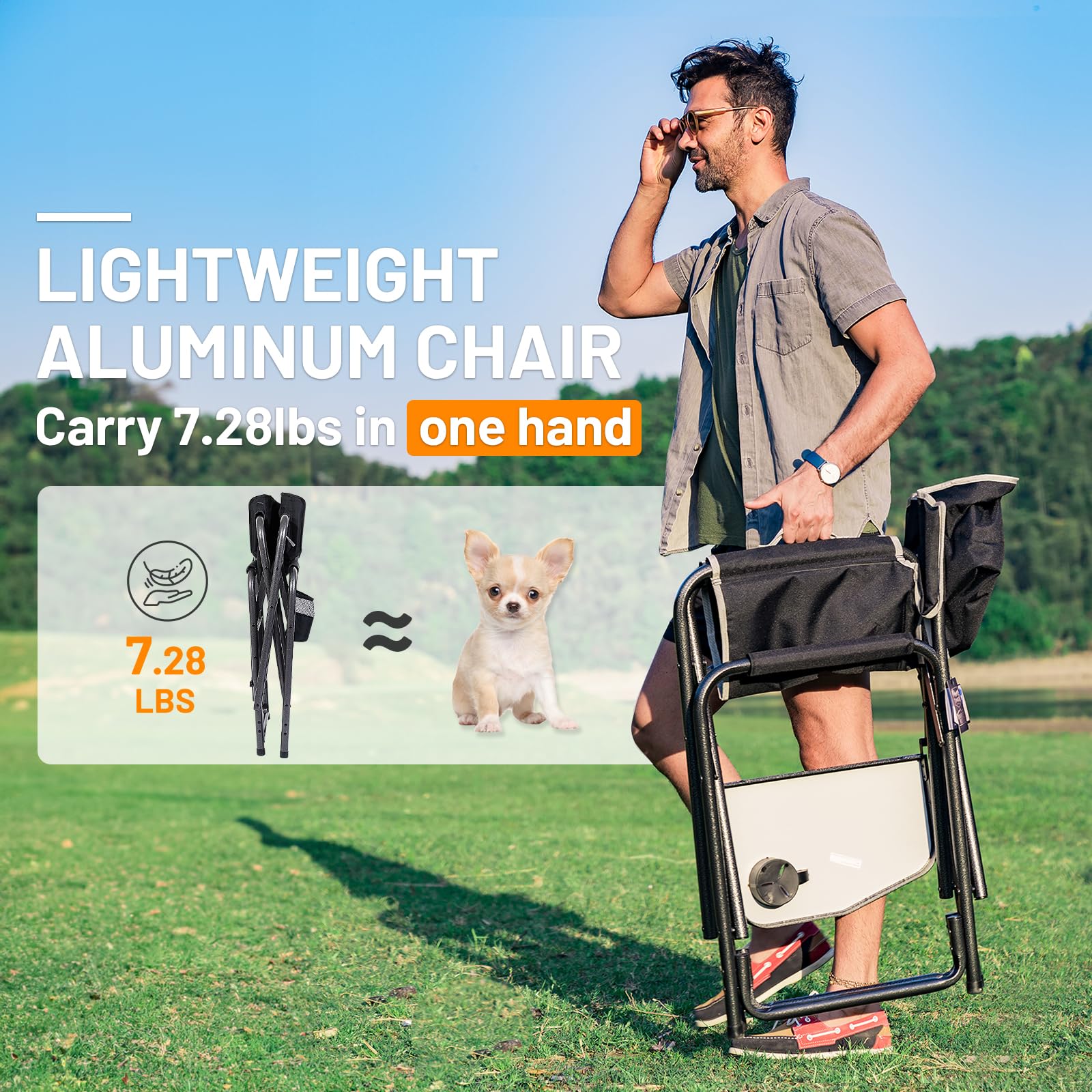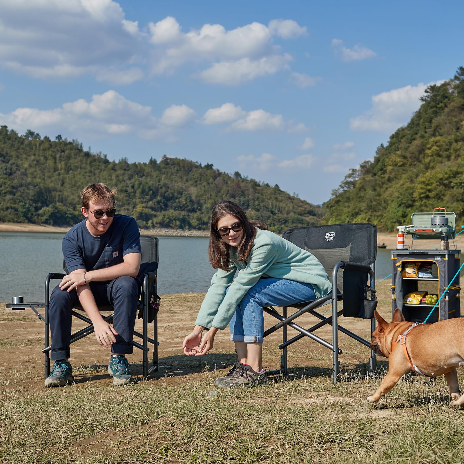 TIMBER RIDGE Aluminum Oversized Camping Chair, Lightweight Portable Directors Chair with Side Table Detachable Side Pocket for Outdoor Camping, Lawn, Picnic, Support 400lbs Black 2 Pack