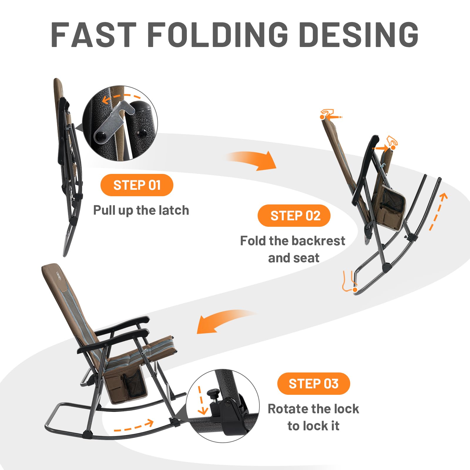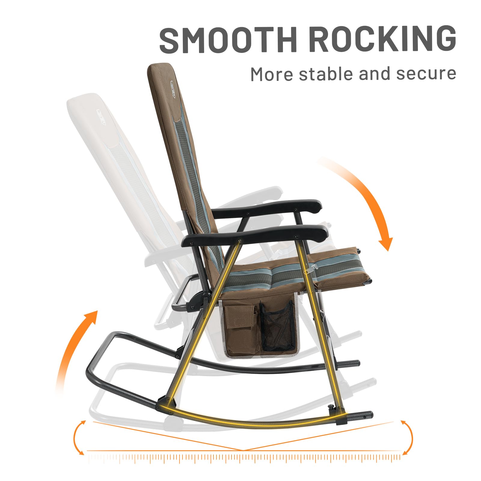 TIMBER RIDGE Foldable Padded Rocking Chair for Outdoor, High Back and Heavy Duty, Portable for Camping, Patio, Lawn, Garden, Yard or Balcony, Supports 300lbs (Brown)